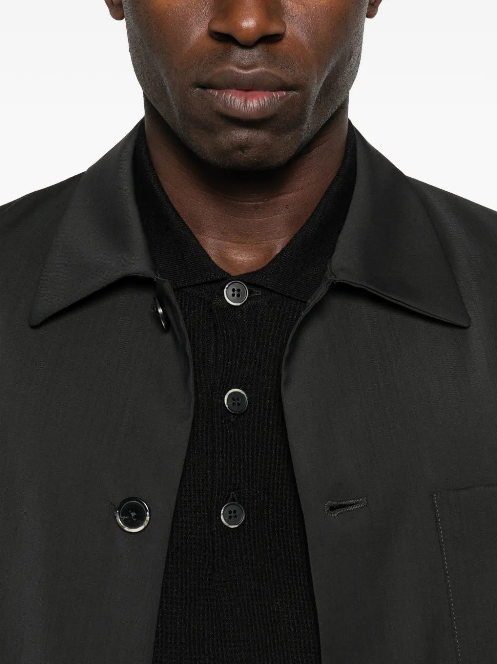 Черная рубашка с застежкой на пуговицы, длинными рукавами и отложным воротником