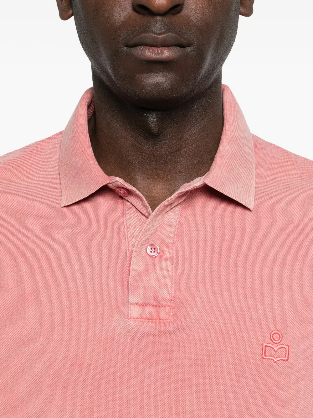 Розовая рубашка с вышитым логотипом, короткими рукавами, застежкой на пуговицы и классическим воротником