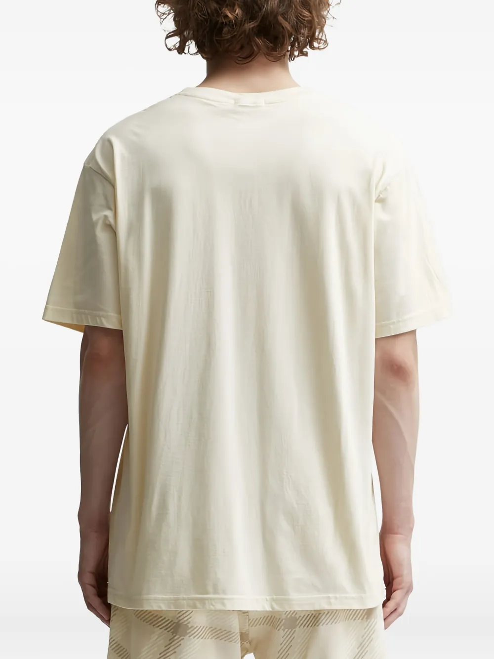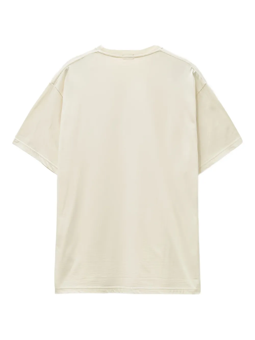 Бежевый, с логотипом, круглым вырезом и короткими рукавами