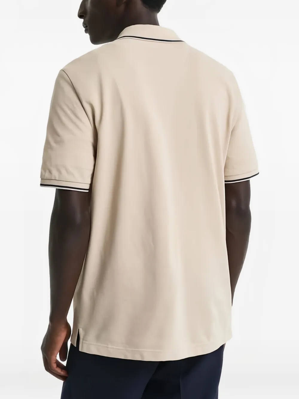 Бежевый поло с отделкой по воротнику, короткими рукавами, вышитым логотипом, воротником-поло и планкой с пуговицами спереди