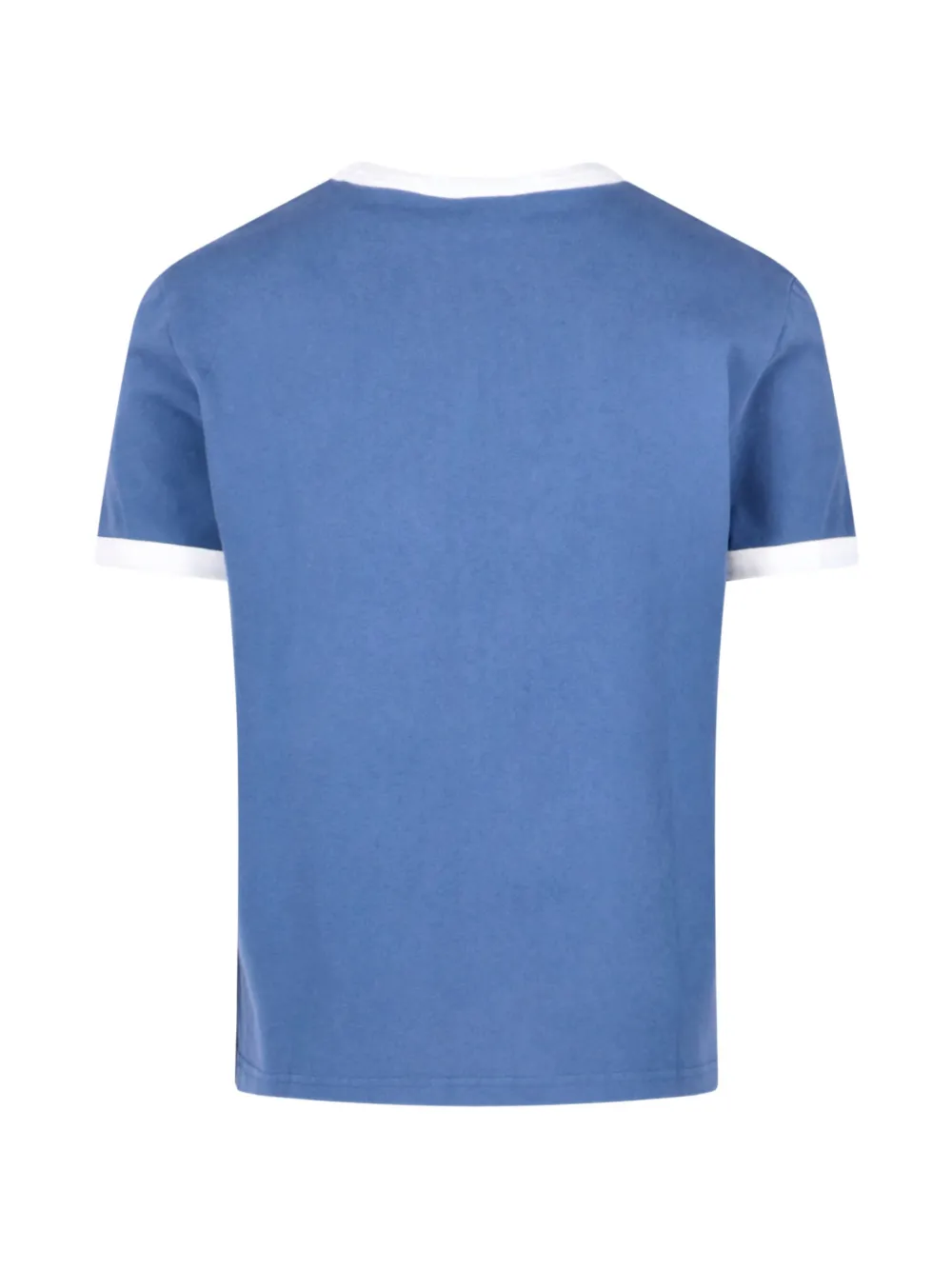 Синий свитшот с логотипом, круглым вырезом, короткими рукавами и рубчатыми отделками