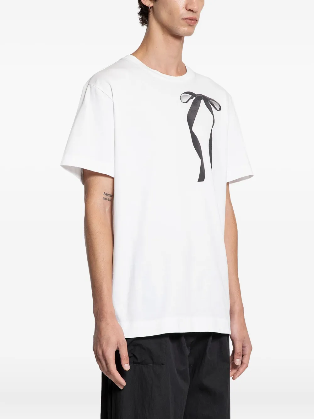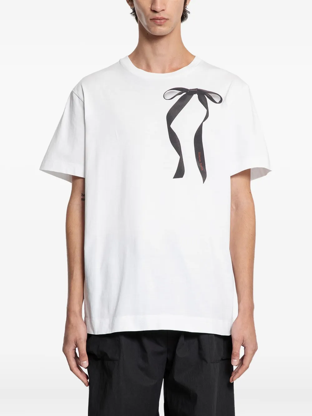 Белый короткие рукава круглый вырез принт с лентами