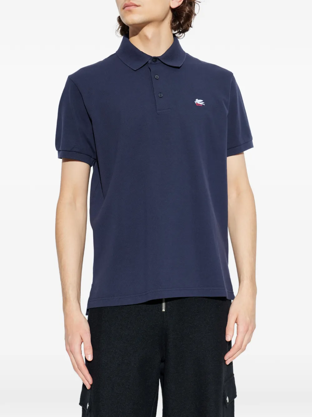Темно-синее поло с вышивкой логотипа, застежкой на пуговицы, короткими рукавами и классическим воротником