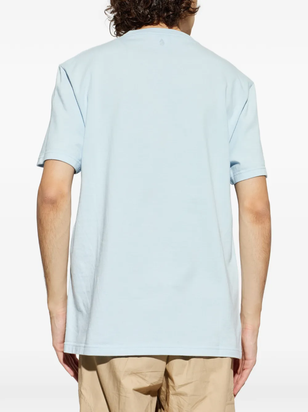 Светло-голубая футболка с круглым вырезом и графическим принтом, короткие рукава