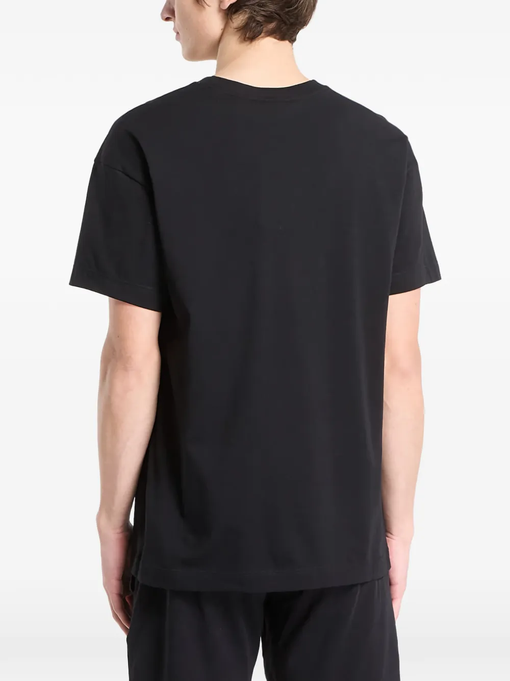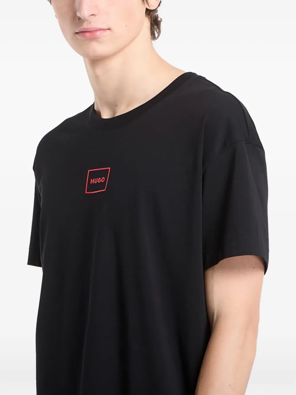 Черный свитшот с квадратным логотипом на груди, короткими рукавами и круглым вырезом