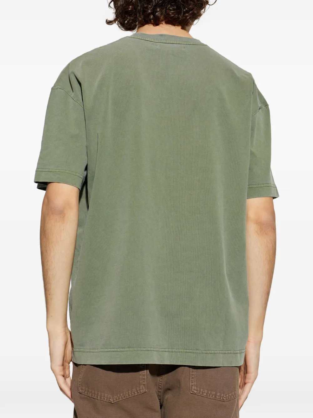 Зеленая футболка с круглым вырезом, короткими рукавами и принтом-логотипом