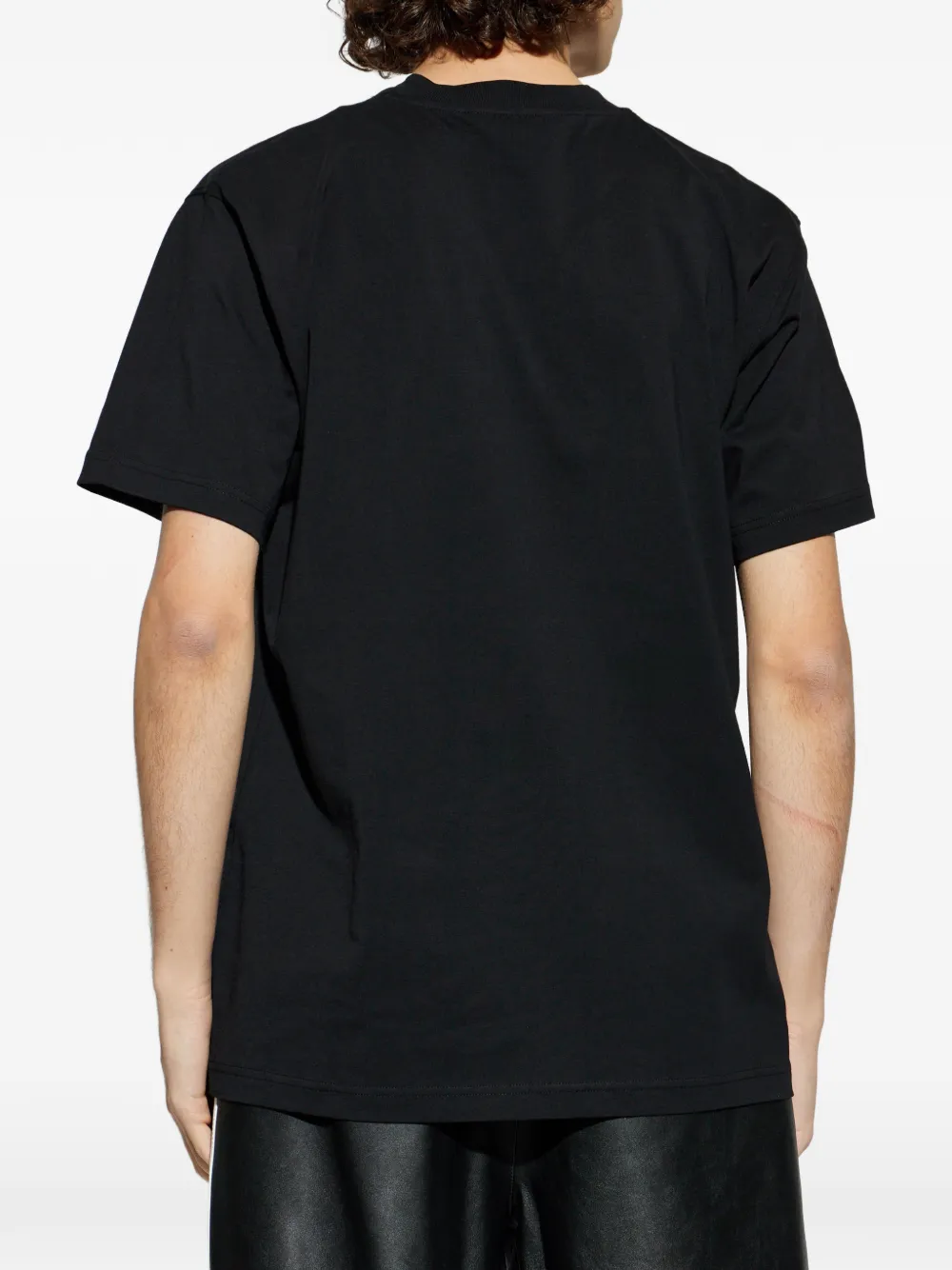 Черная футболка с принтом-логотипом, круглым вырезом и короткими рукавами