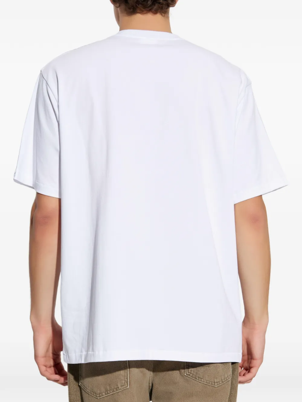 Белая футболка с леопардовым принтом, логотипом, круглым вырезом и короткими рукавами