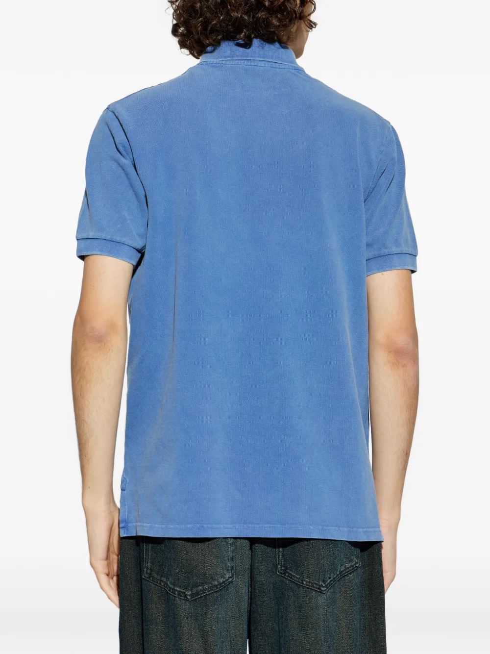 Индиго-синяя футболка-поло с вышитым логотипом, воротником на пуговицах, короткими рукавами