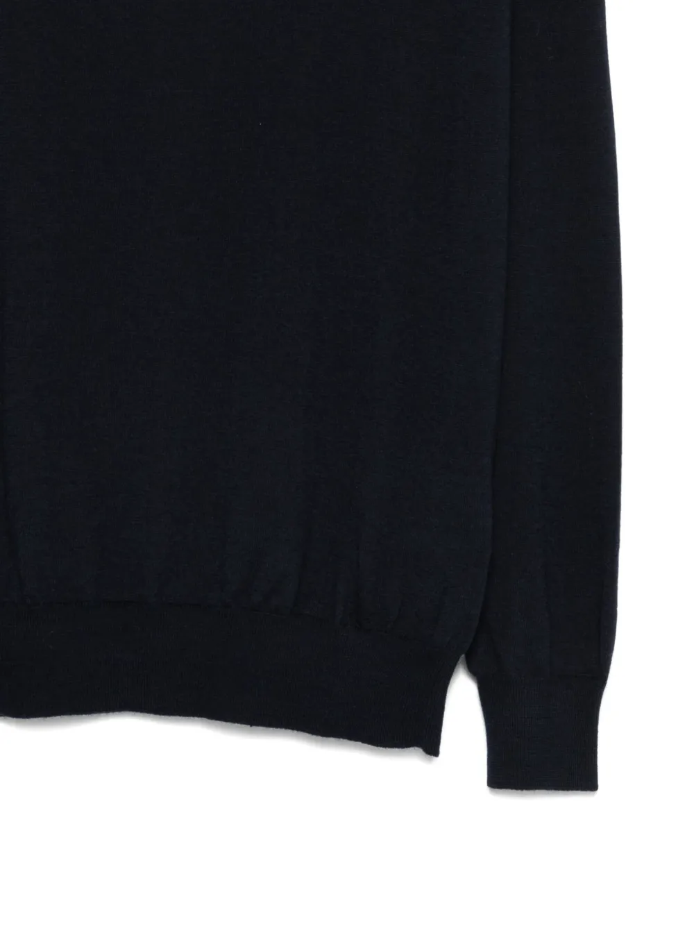 Темно-синий длинные рукава застежка-молния до половины воротник поло рубчатые край и манжеты