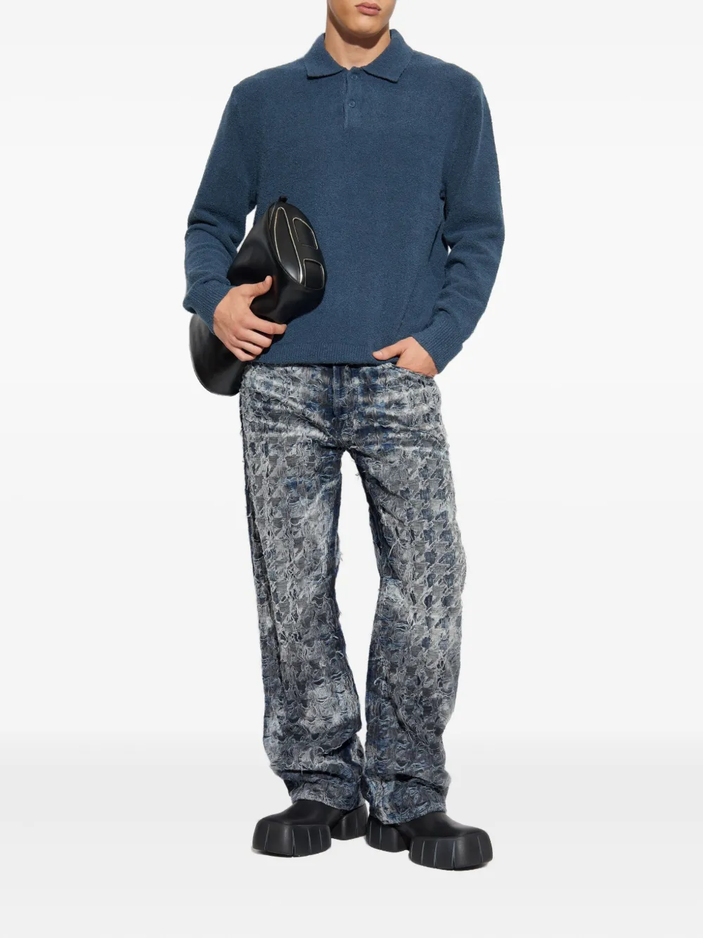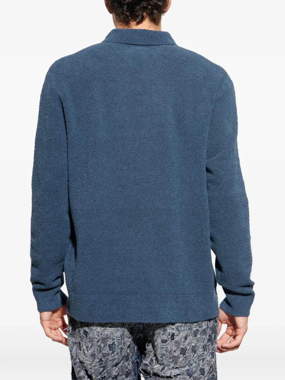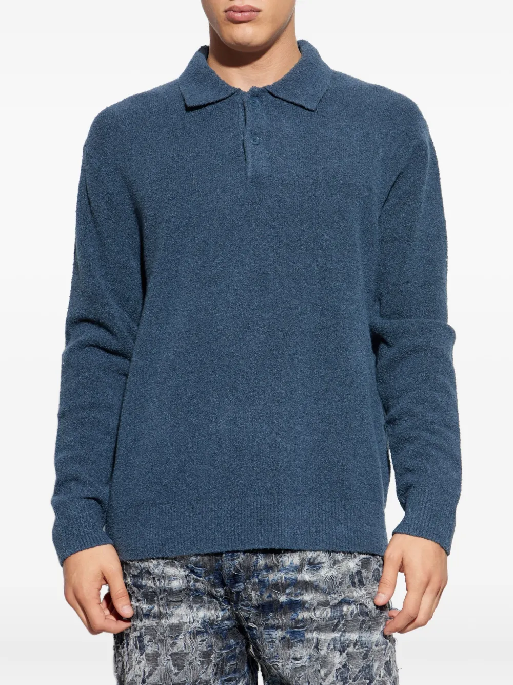 Полуночный синий смешанная органическая хлопковая ткань длинные рукава застежка на пуговицы поло воротник