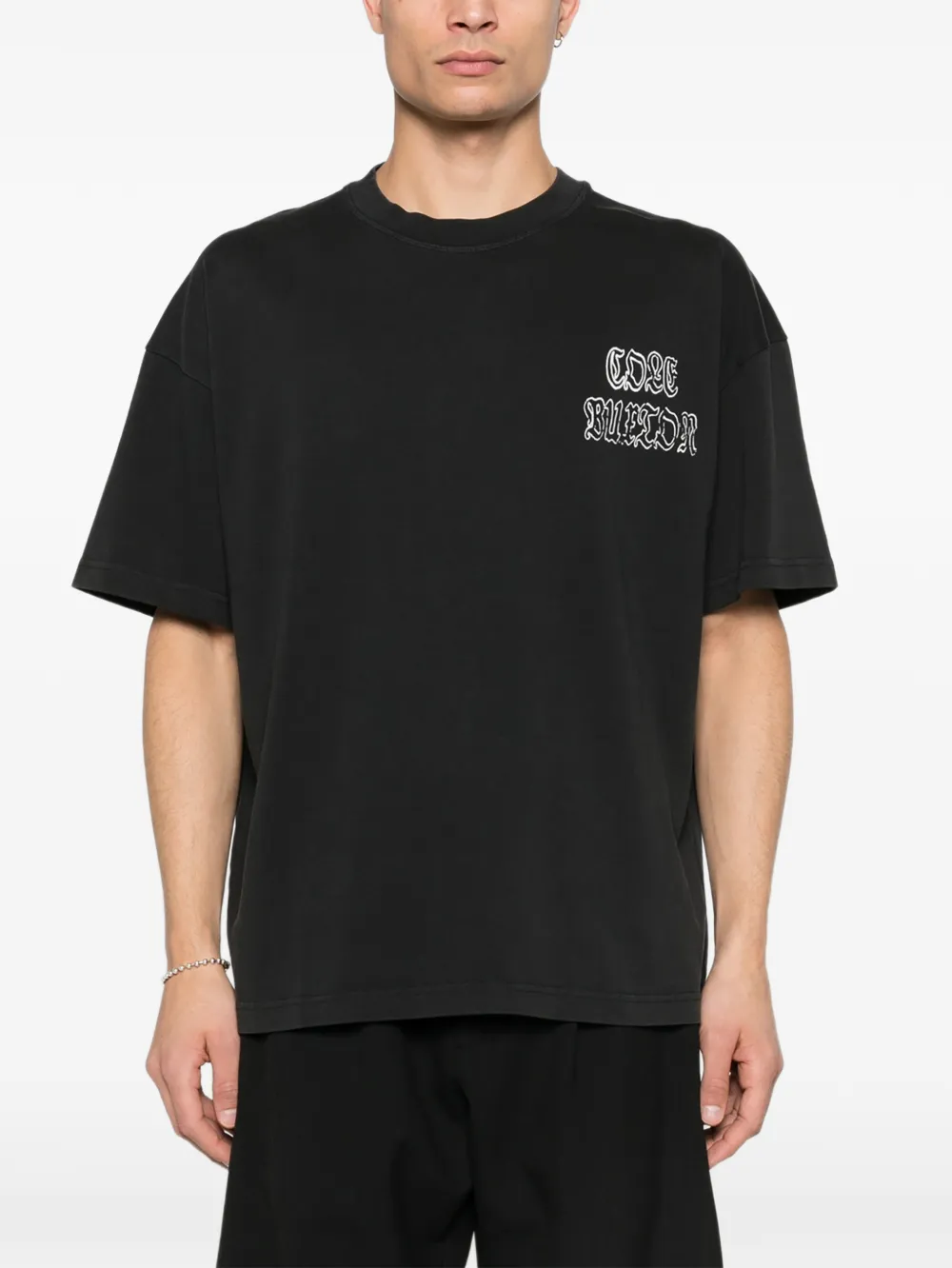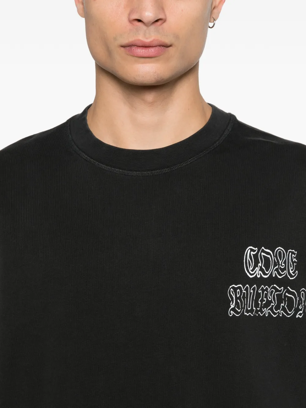 Черная футболка с логотипом, круглым вырезом и короткими рукавами