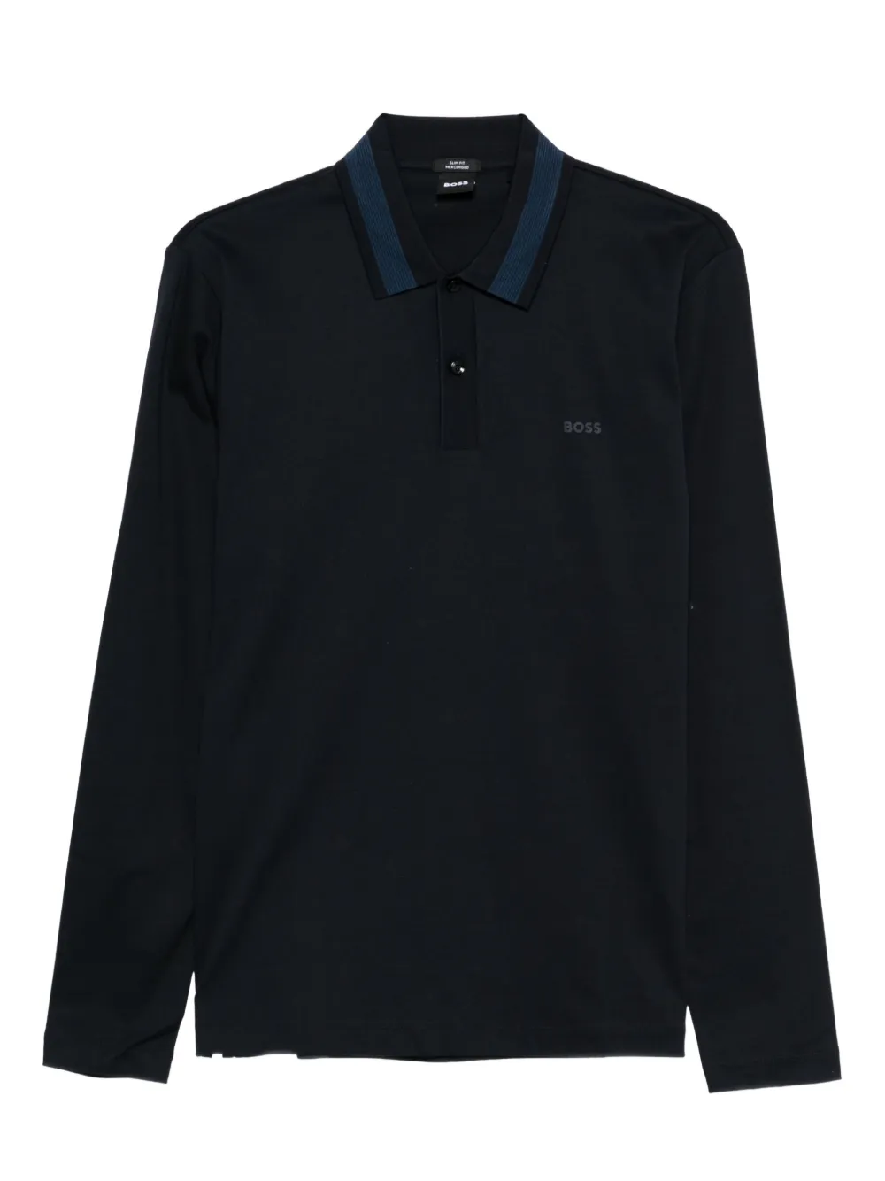 Темно-синий длинные рукава воротник с отделкой застежка на пуговицы спереди принт с логотипом