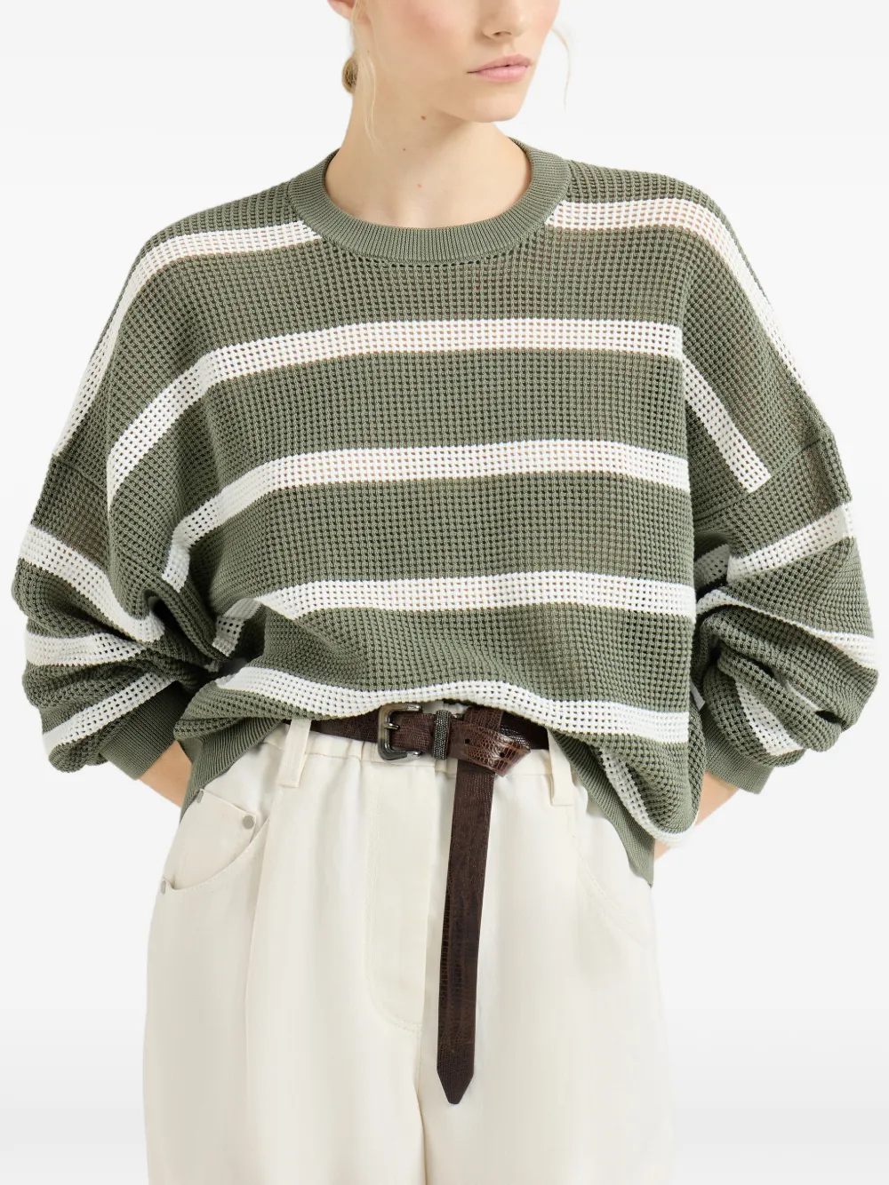 Полосатый свитер Brunello Cucinelli, зеленый 188 255₽