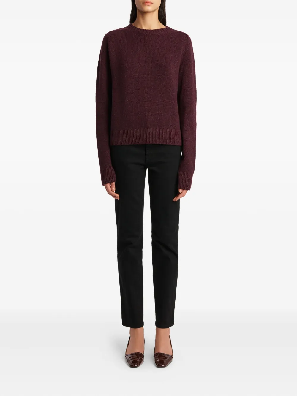 Красный джемпер с ребристой отделкой, круглым вырезом и длинными рукавами