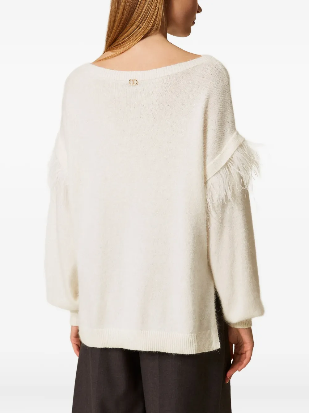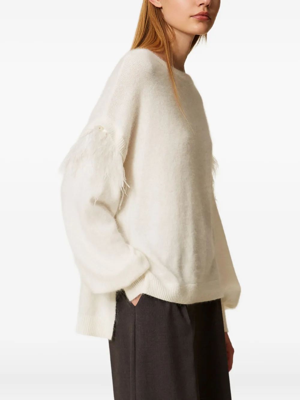 Свитер с отделкой из перьев Twinset, белый