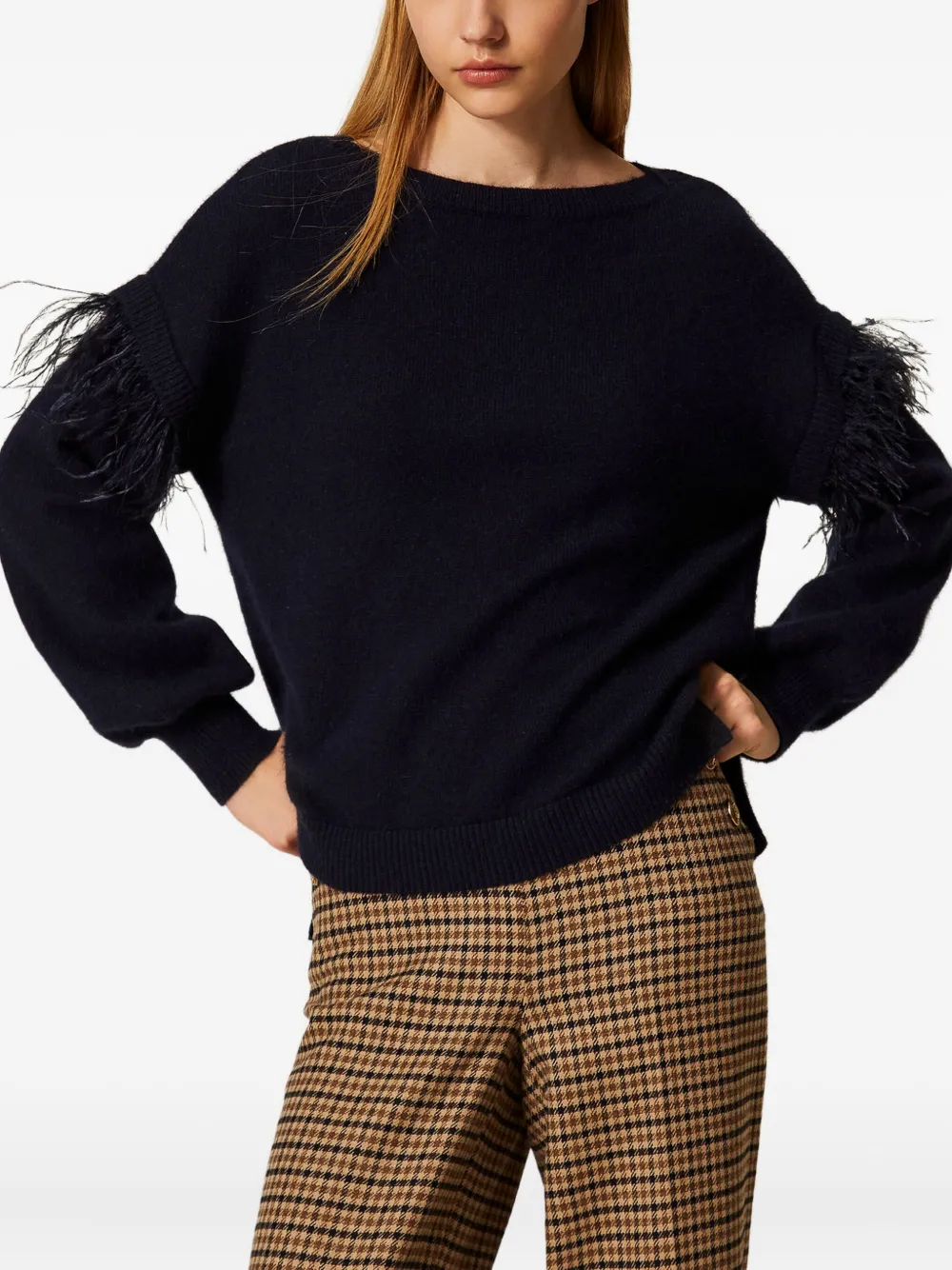 Свитер с отделкой из перьев Twinset, черный