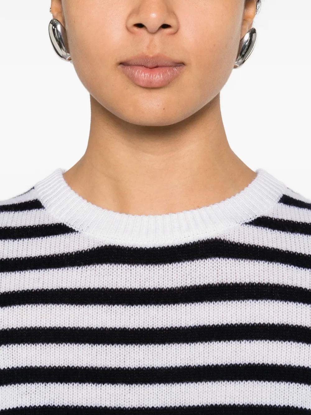 Черно-белая полосатая футболка с круглым вырезом и рукавами три четверти