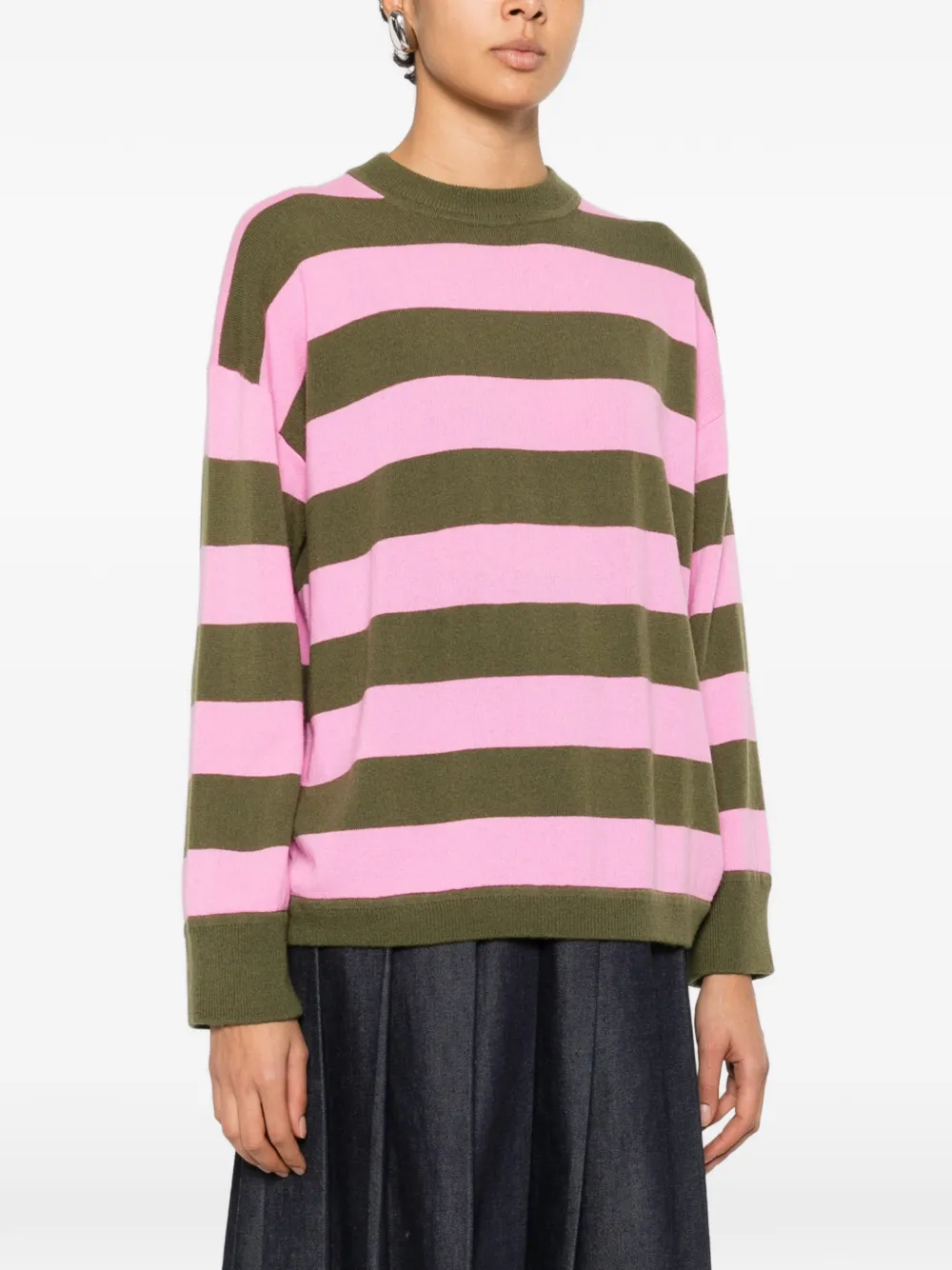 Розовая и зеленая в полоску, круглый вырез, длинные рукава, ребристый низ, ребристые манжеты