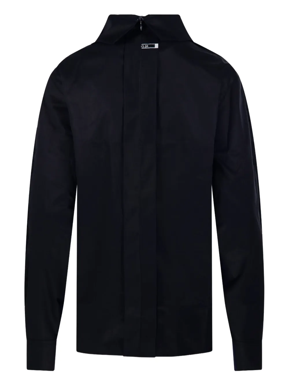 Темно-синий высокий воротник боковые разрезы длинные рукава застежка на молнию