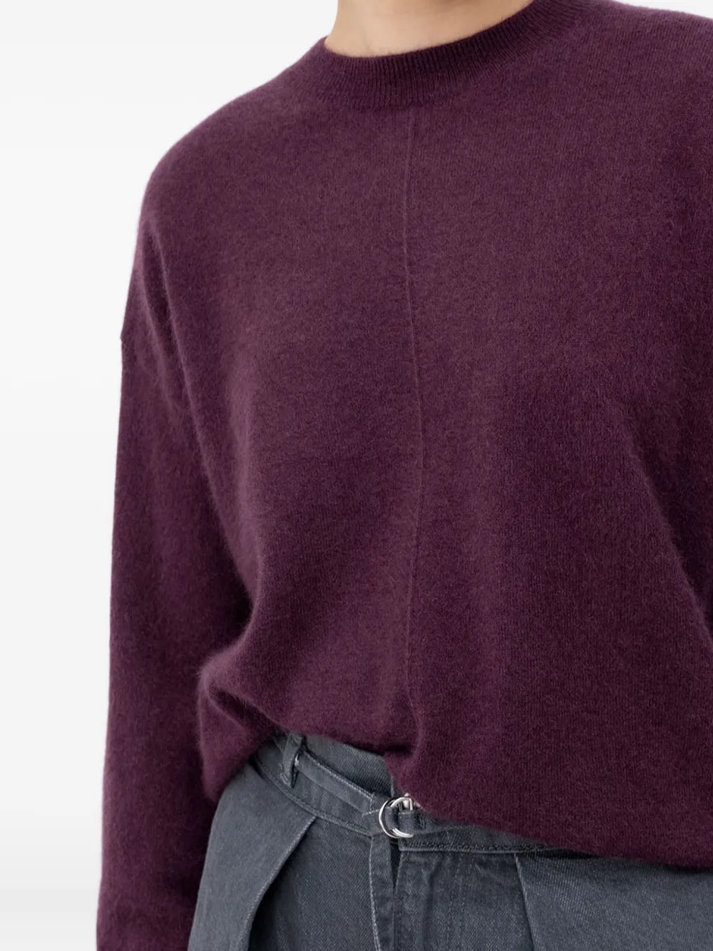 Фиолетовый джемпер с круглым вырезом, длинными рукавами и отделкой швами