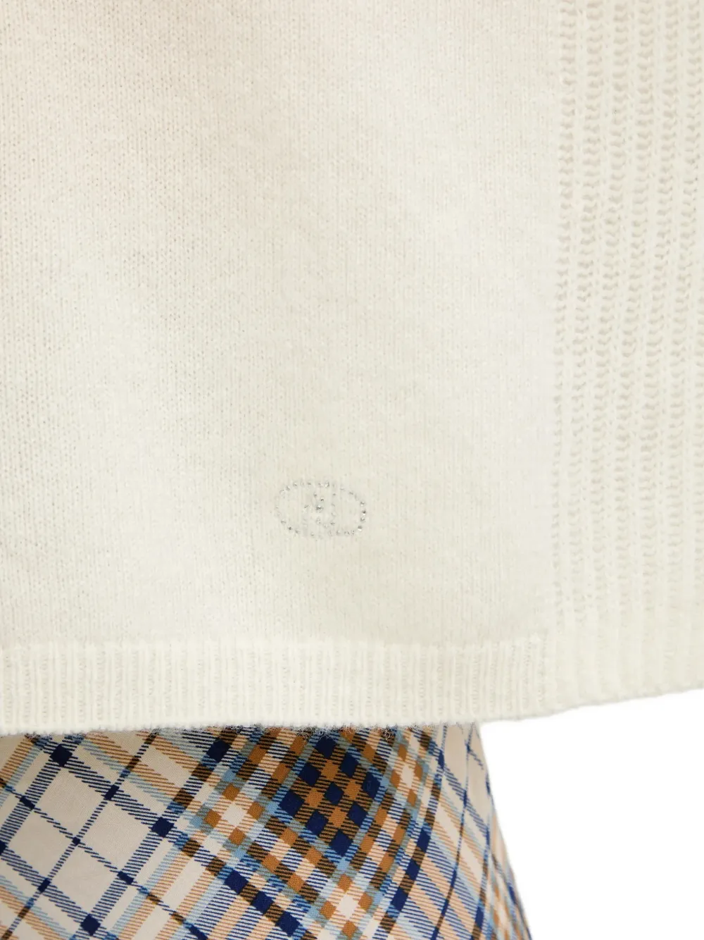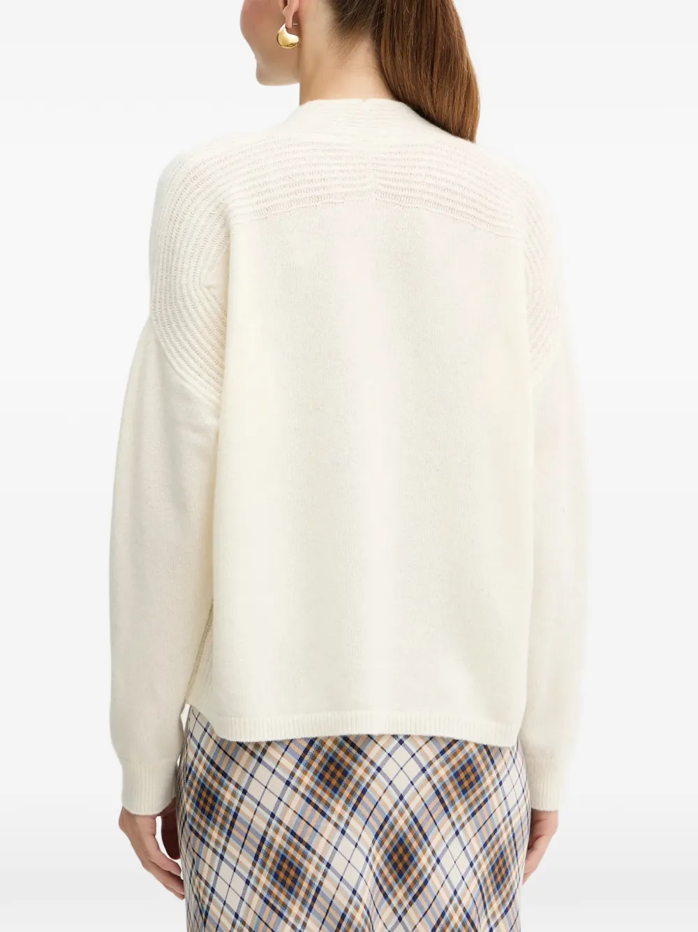 Бежевый пуловер с V-образным вырезом, рубчатой отделкой и длинными рукавами