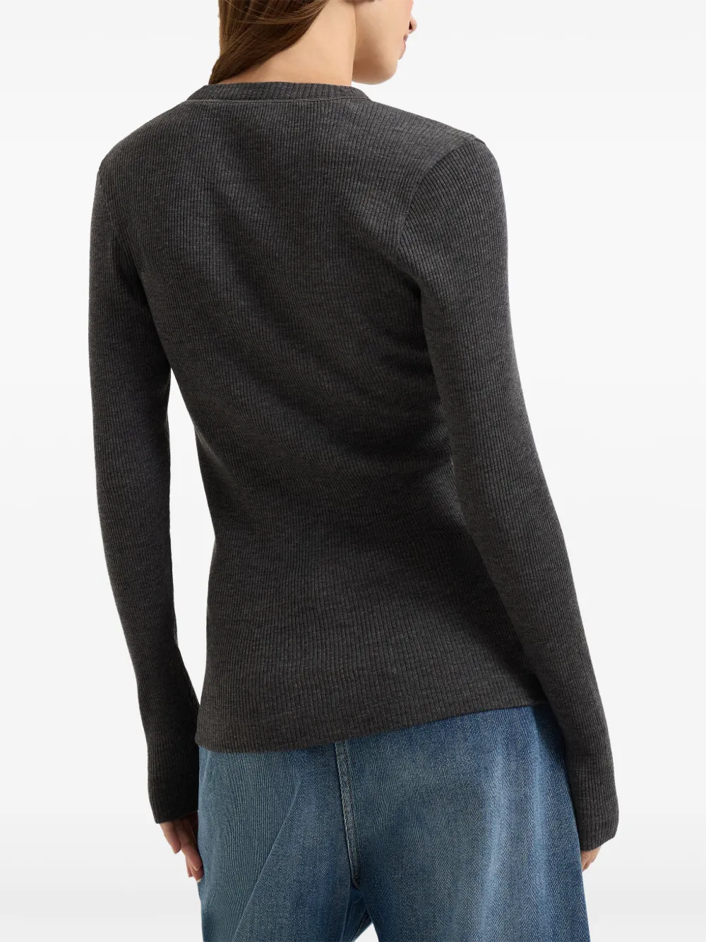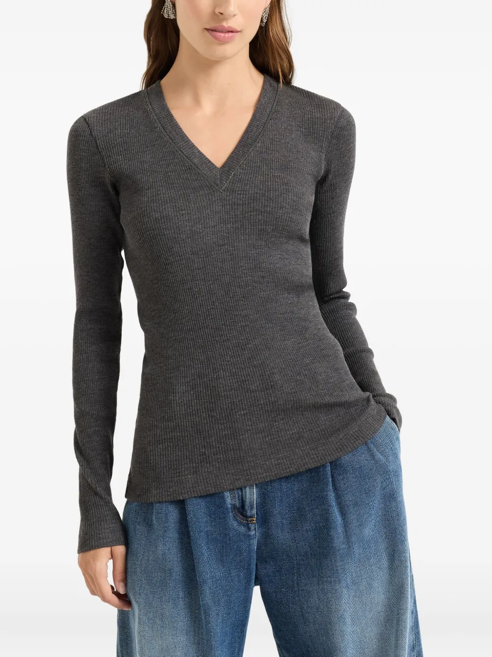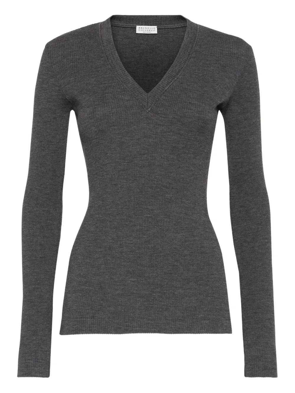 Свитер в рубчик с V-образным вырезом Brunello Cucinelli, серый