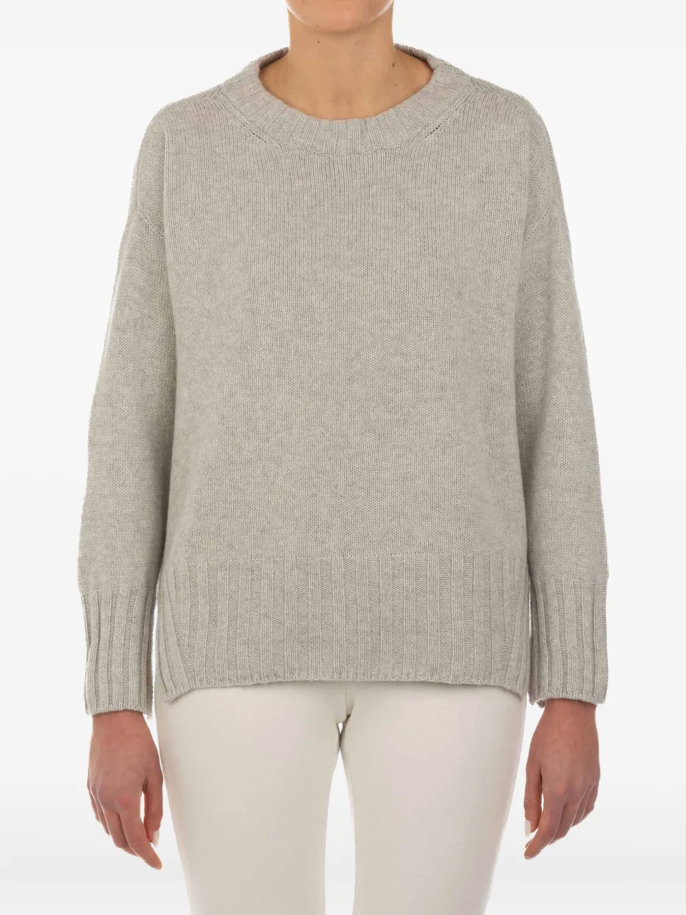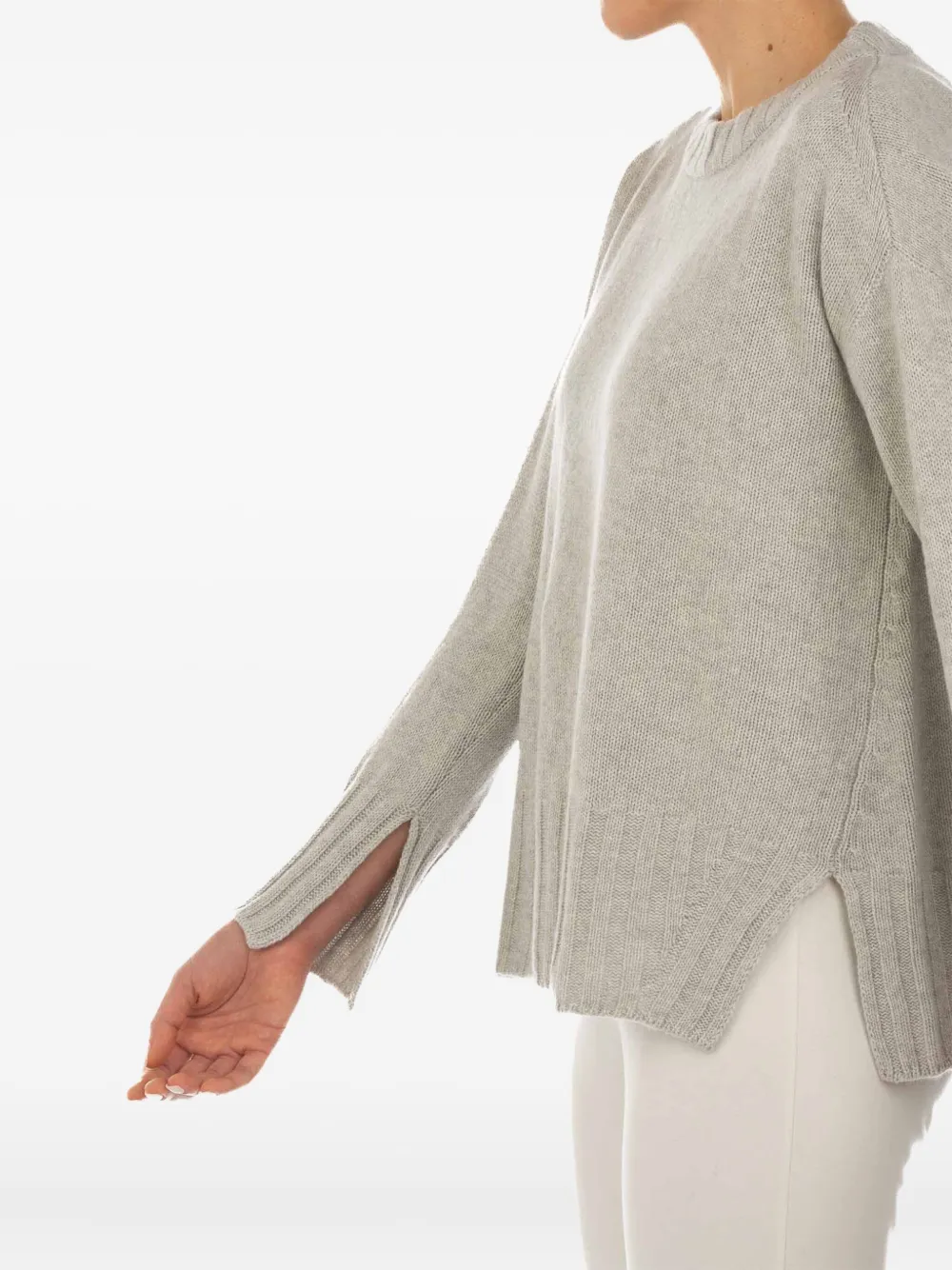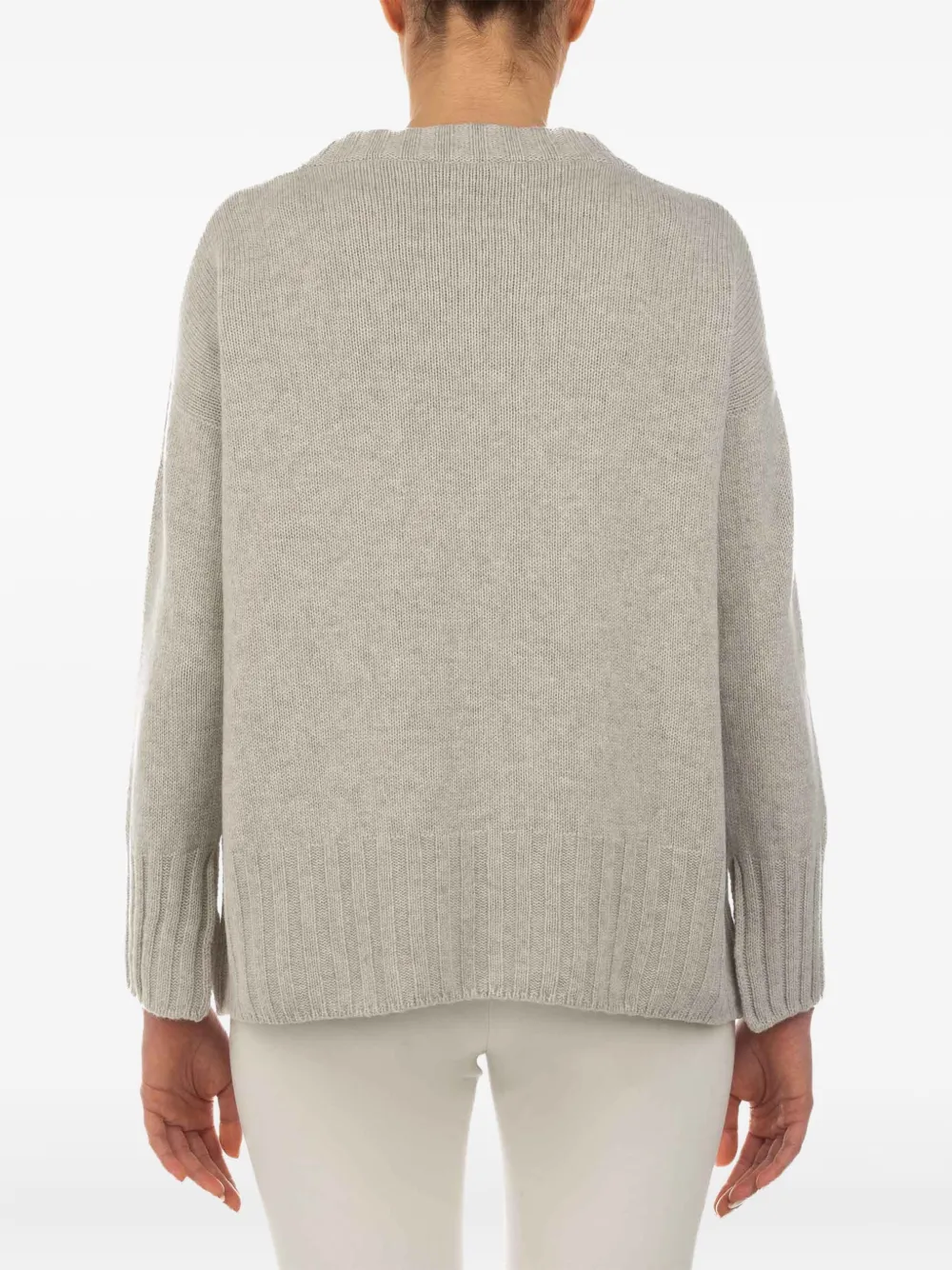Шерстяной свитер с подолом в рубчик Le Tricot Perugia, серый