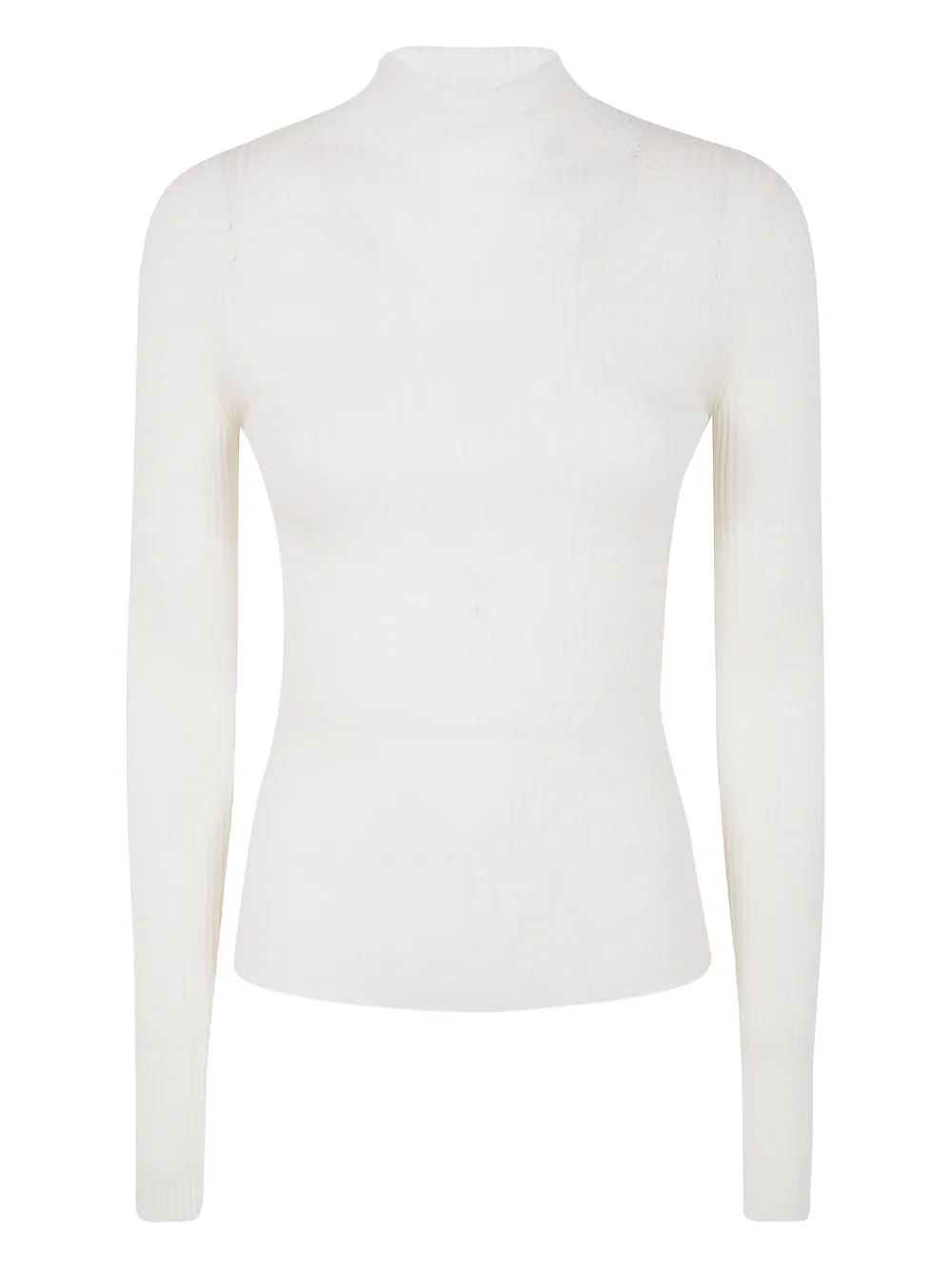Белый в рубчик высокий ворот длинные рукава