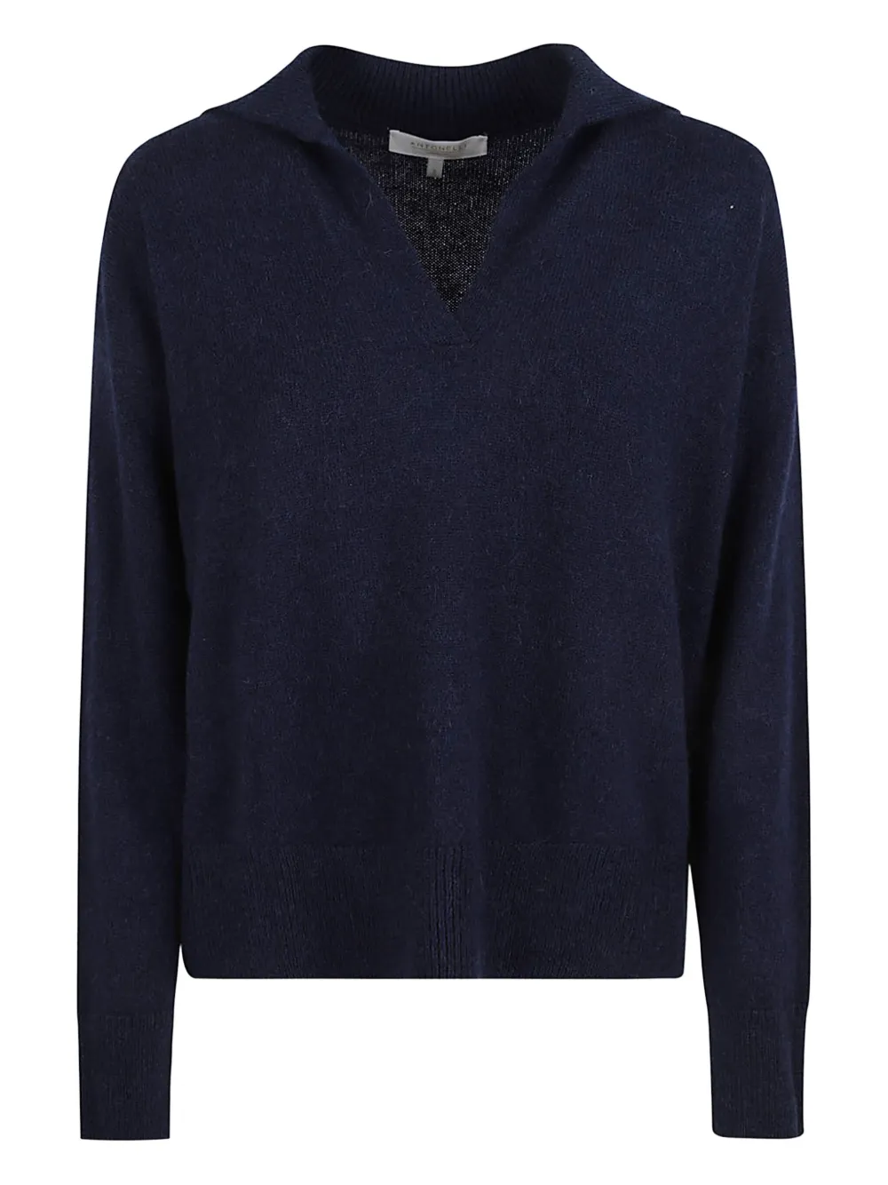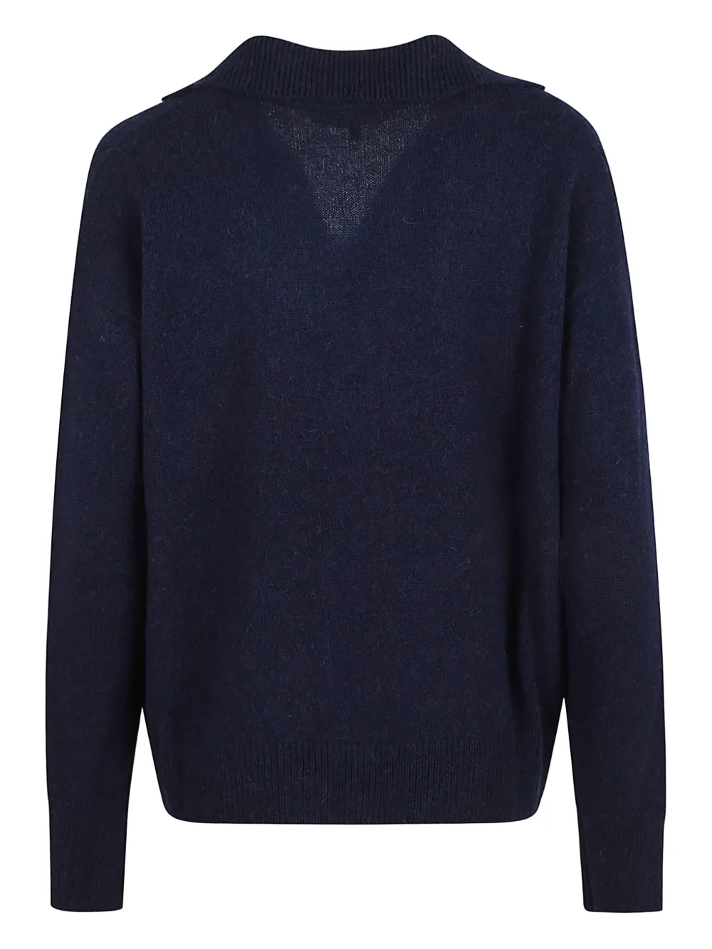 Вязаный шерстяной свитер с воротником-поло Antonelli, синий