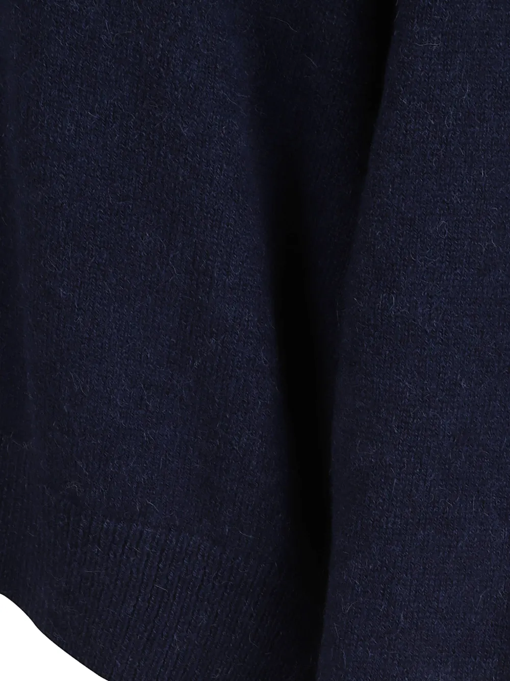 Темно-синяя шерстяная водолазка, длинные рукава, манжеты в рубчик, прямой край