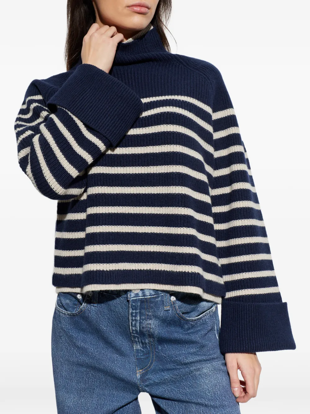 Свитер в полоску с воротником-гольф Rag & Bone, синий