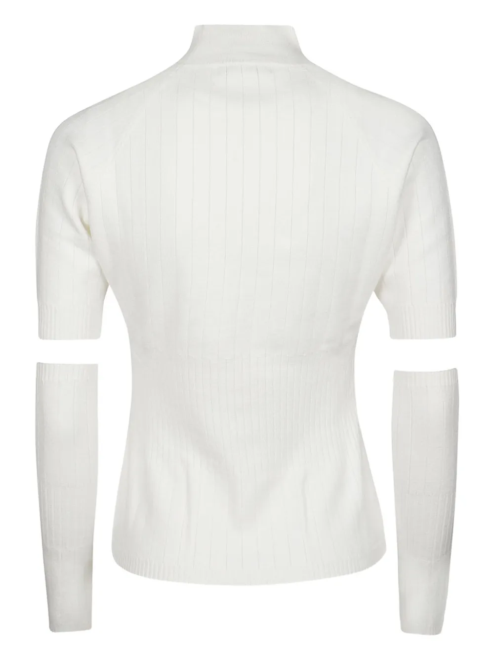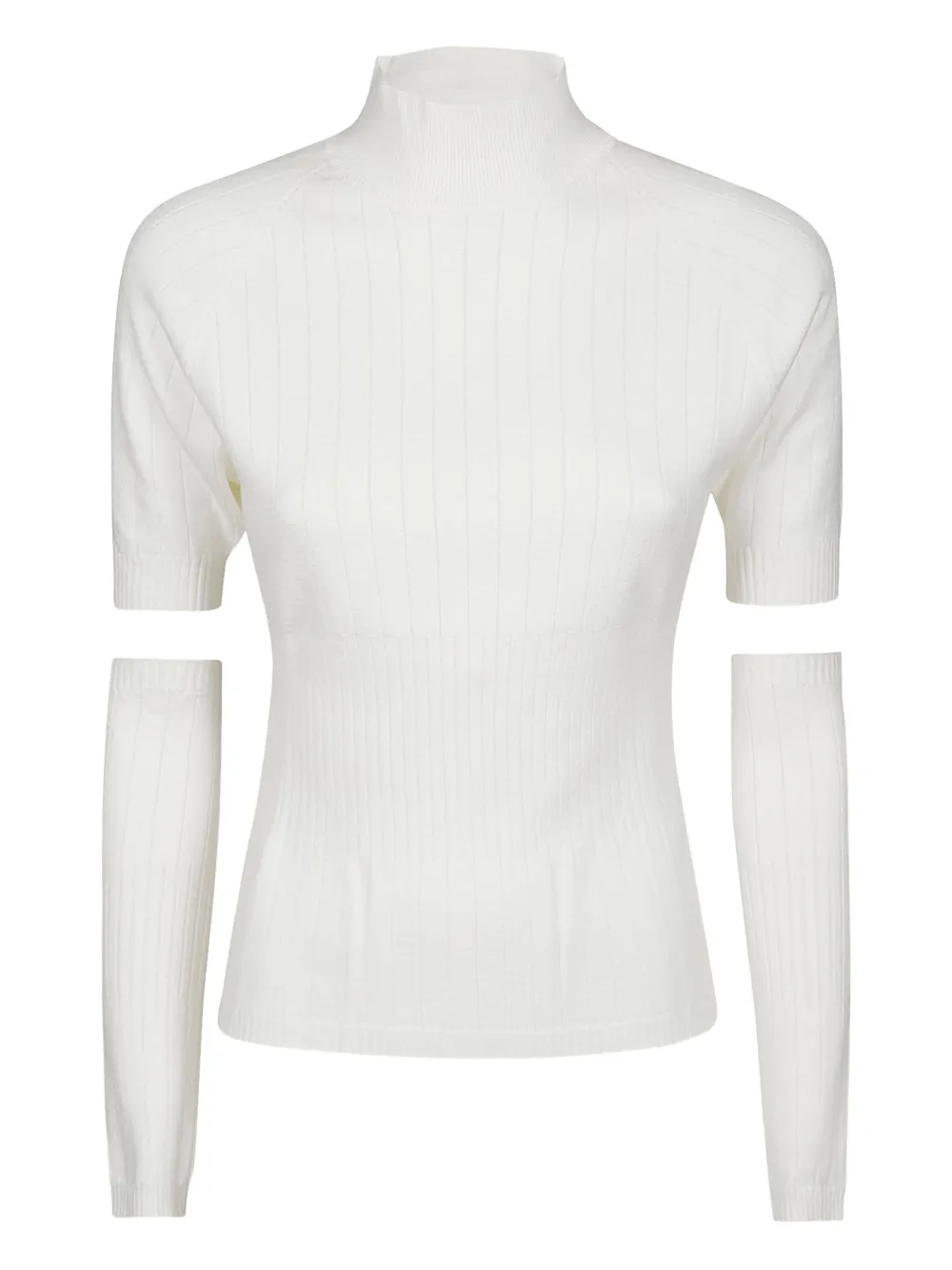 Белый топ с ребристой текстурой, воротником-стойкой и съемными длинными рукавами