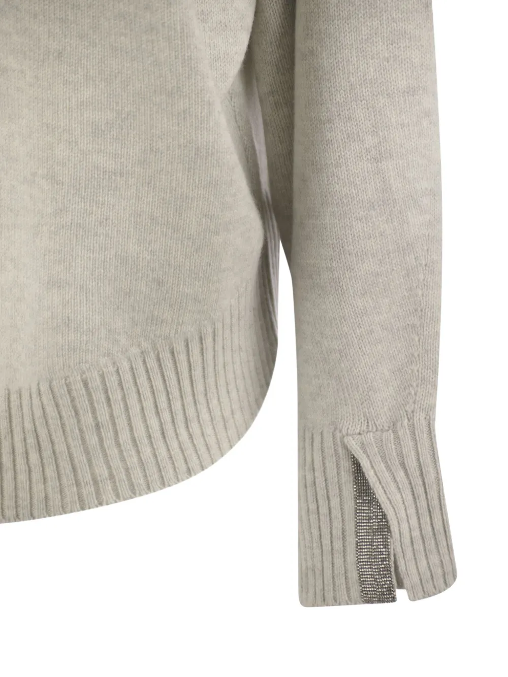 Свитер с воротником-хомутом и декором Monile Brunello Cucinelli, серый