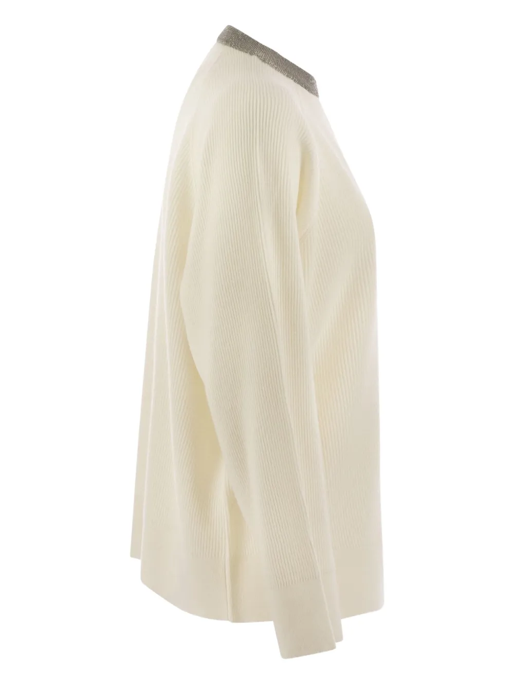 Кашемировый свитер в рубчик Brunello Cucinelli, белый