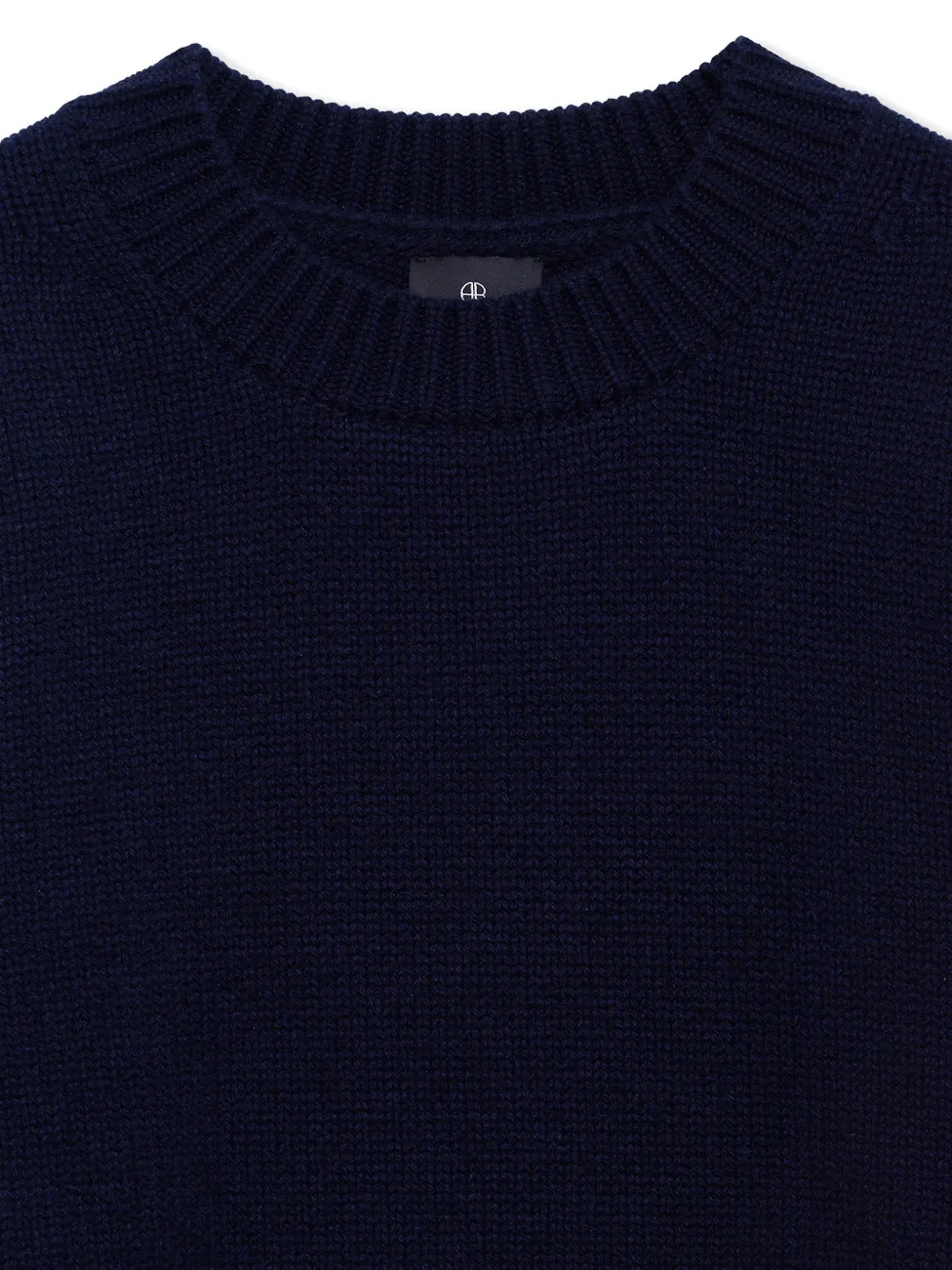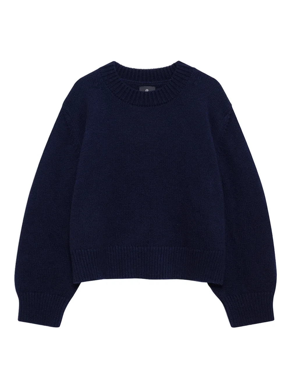 Синий пуловер с круглым вырезом и длинными рукавами