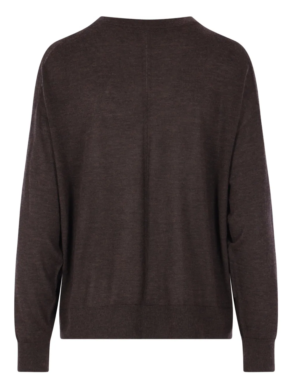 Коричневый вязаный джемпер с V-образным вырезом, длинными рукавами и ребристыми краями