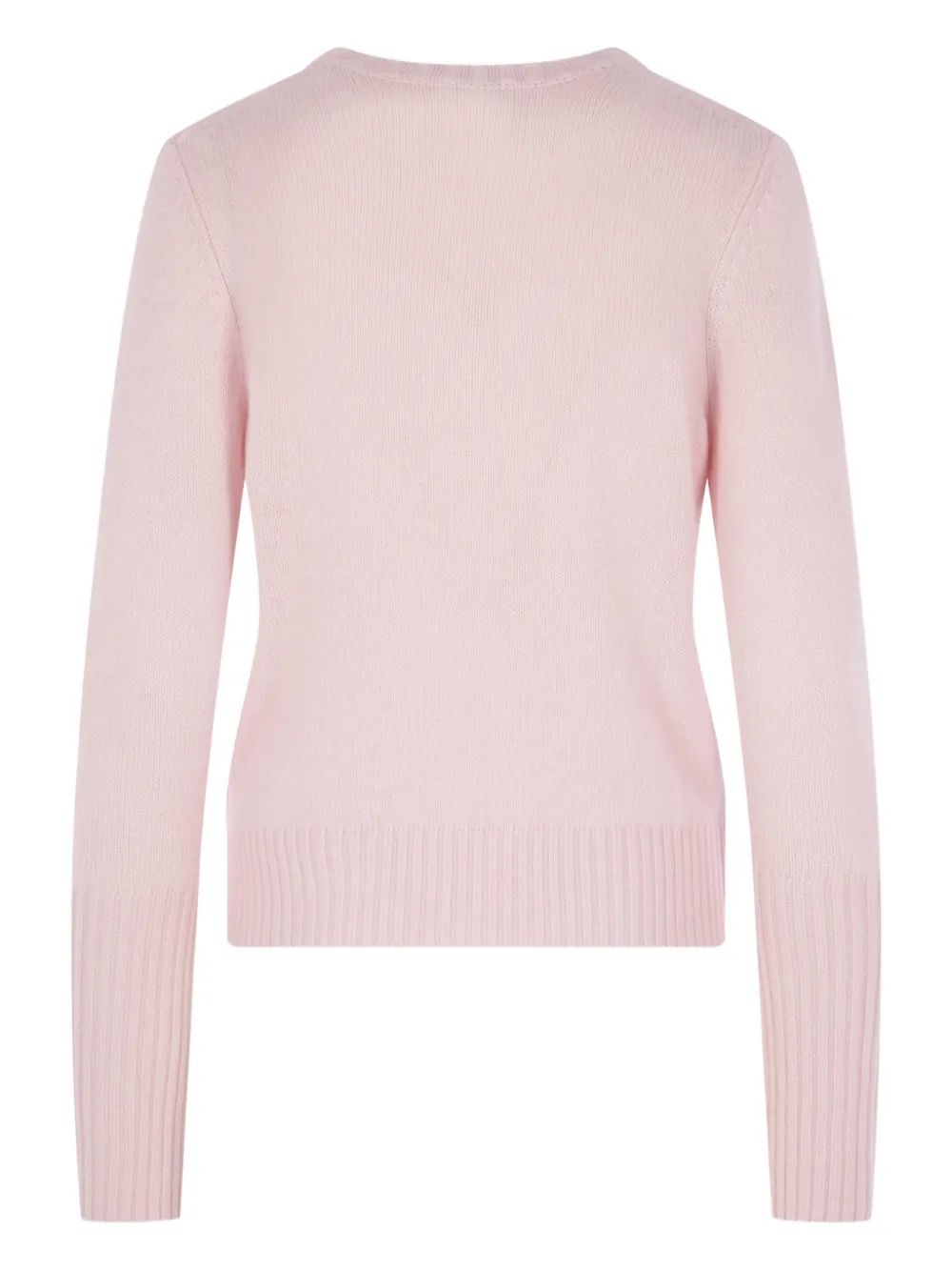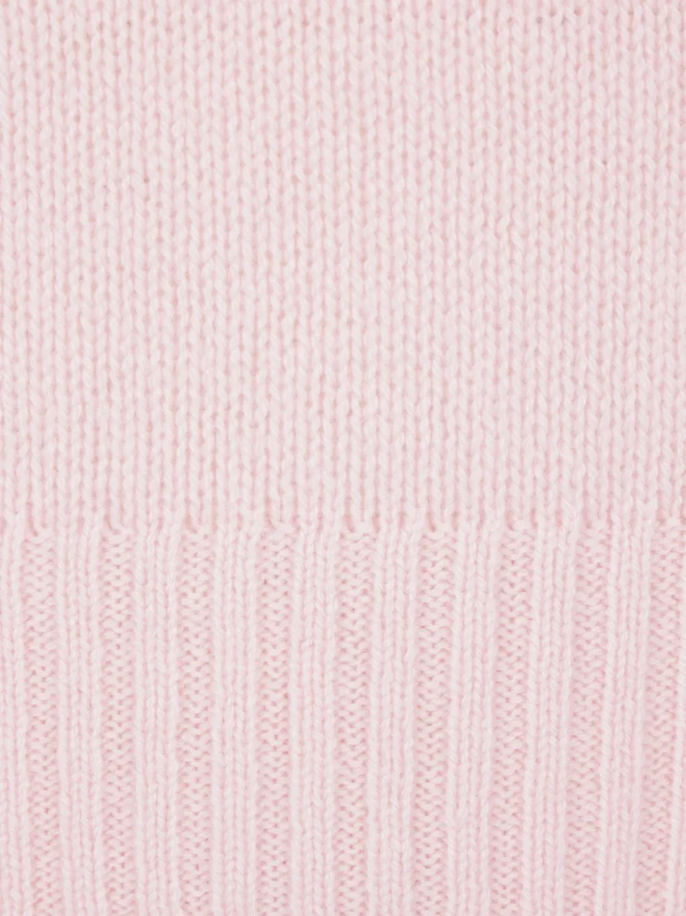 Светло-розовый джемпер с круглым вырезом, длинными рукавами и ребристыми краями, вязаный