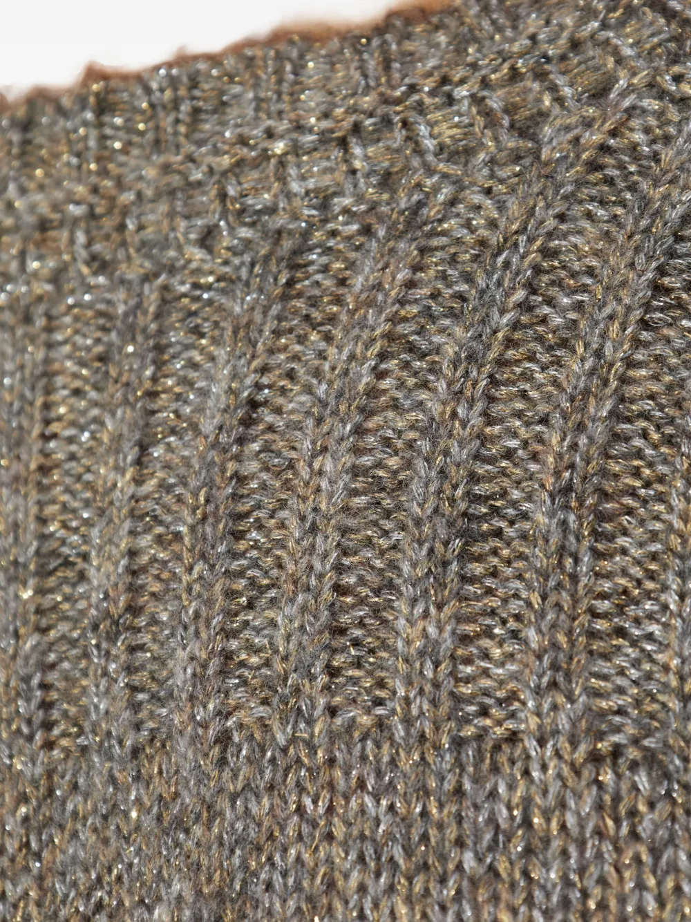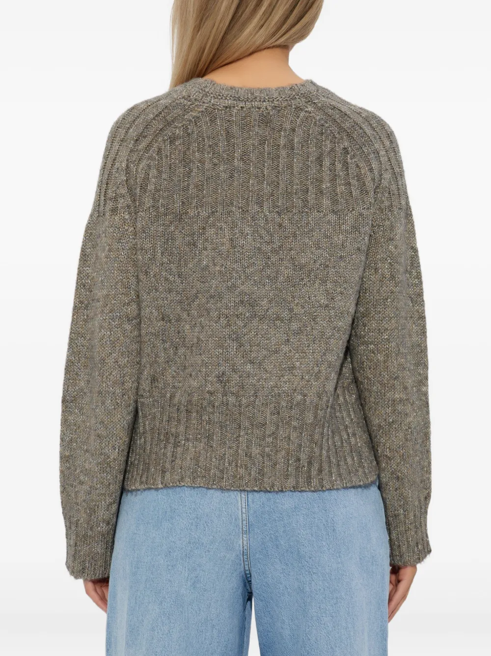 Угольно-серый в рубчик круглый вырез длинные рукава