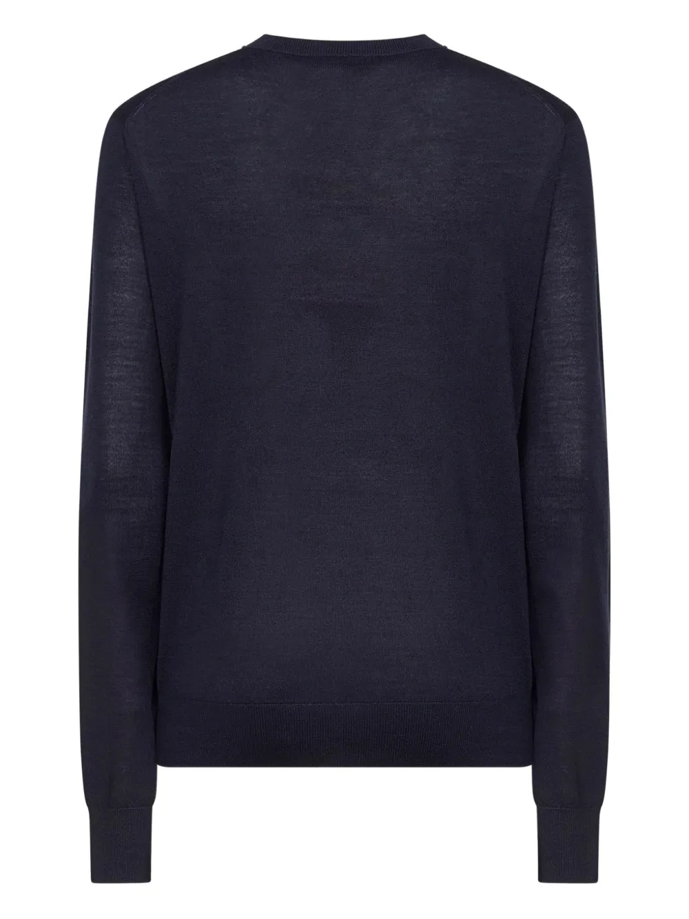Синий свитер с круглым вырезом, длинными рукавами и ребристыми манжетами