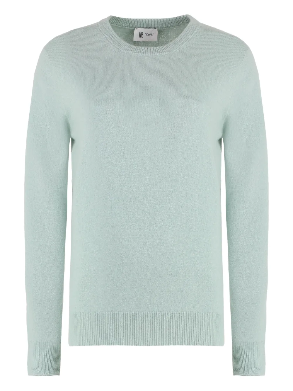 Синий ребристые края смесь кашемира и шелка круглый вырез длинные рукава
