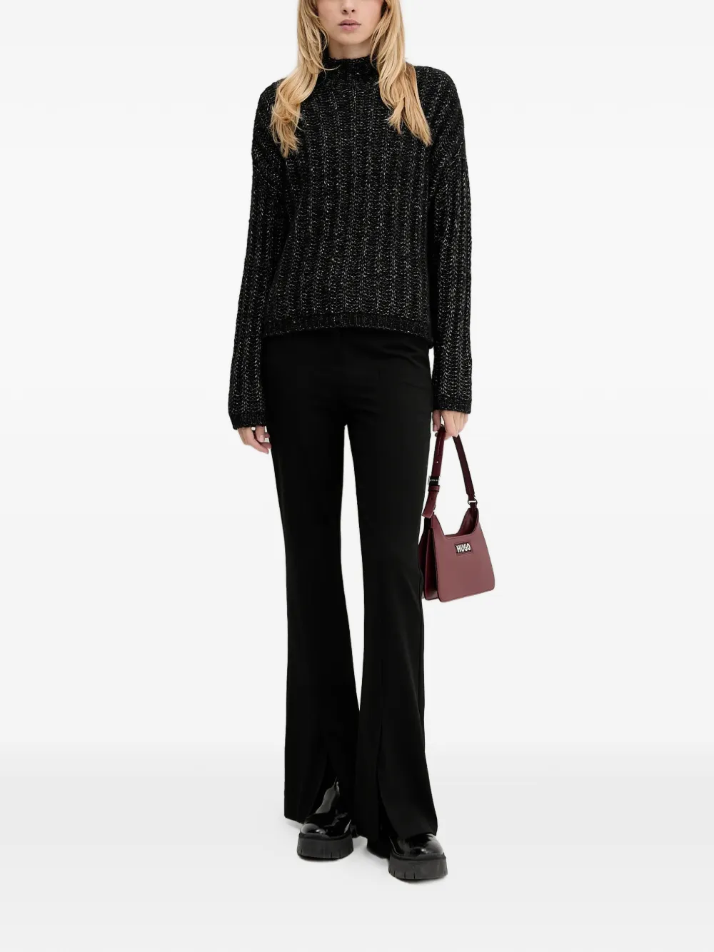 Свитер с высоким воротником Hugo, черный