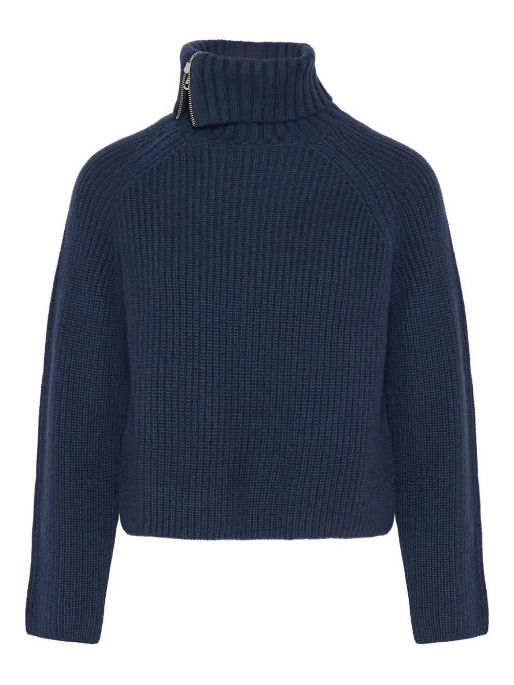 Синий рубчатый трикотаж с высоким воротником, молнией, длинными рукавами-реглан