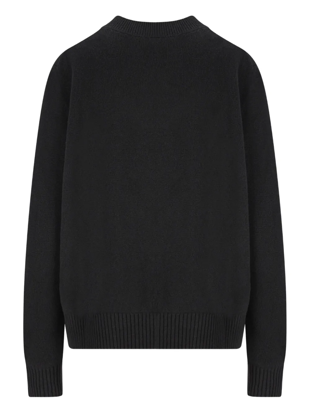 Черный смесь шерсти и кашемира интарсия с логотипом круглый вырез длинные рукава ребристые манжеты и низ