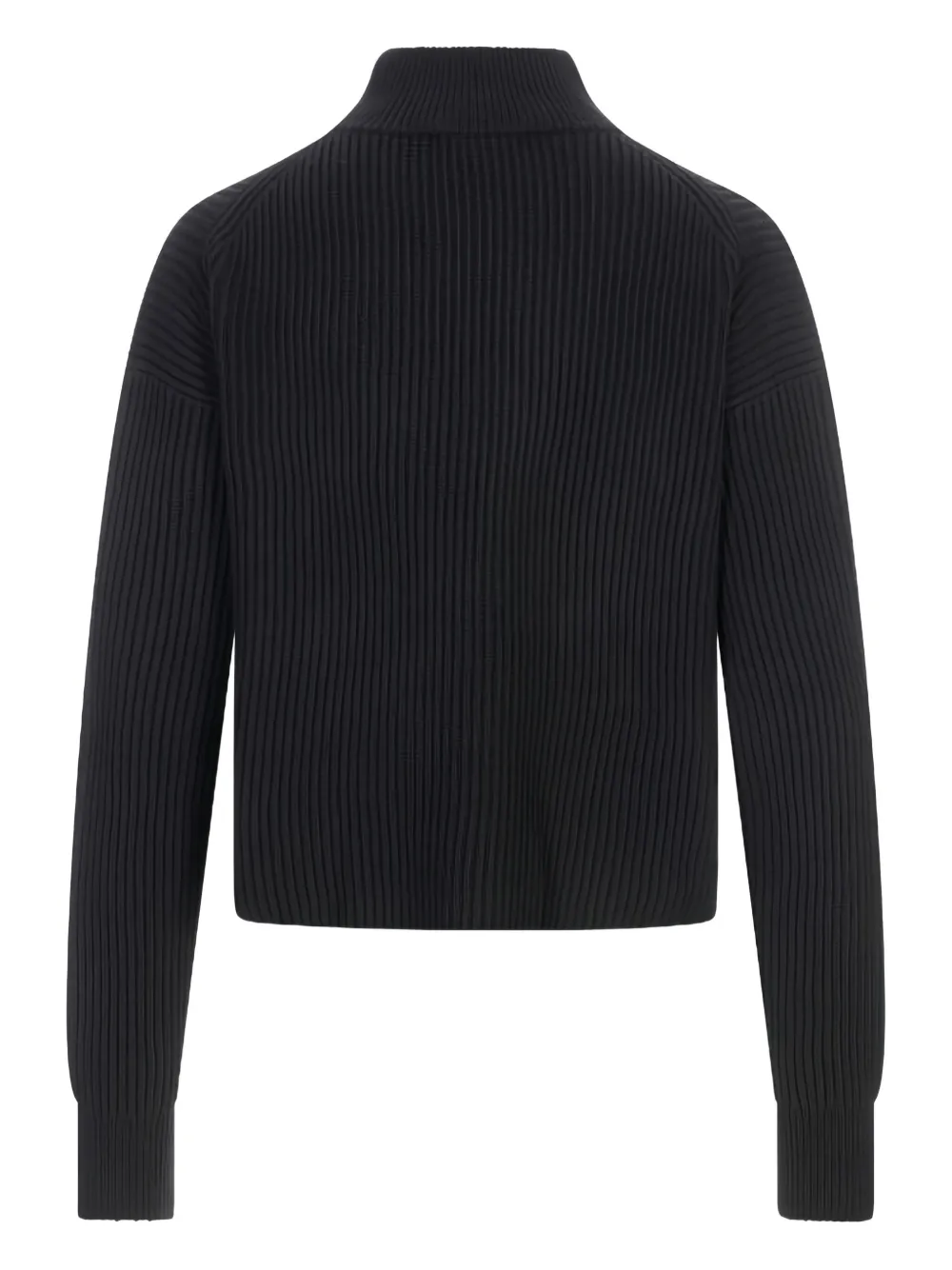 Свитер в рубчик с воротником-воронкой Max Mara, черный
