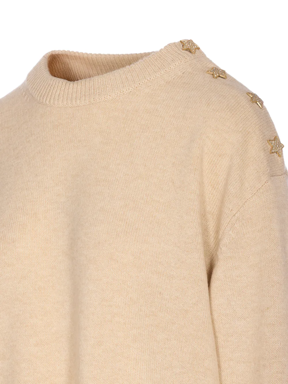 Кремовый лонгслив с круглым вырезом и украшением в виде звезд