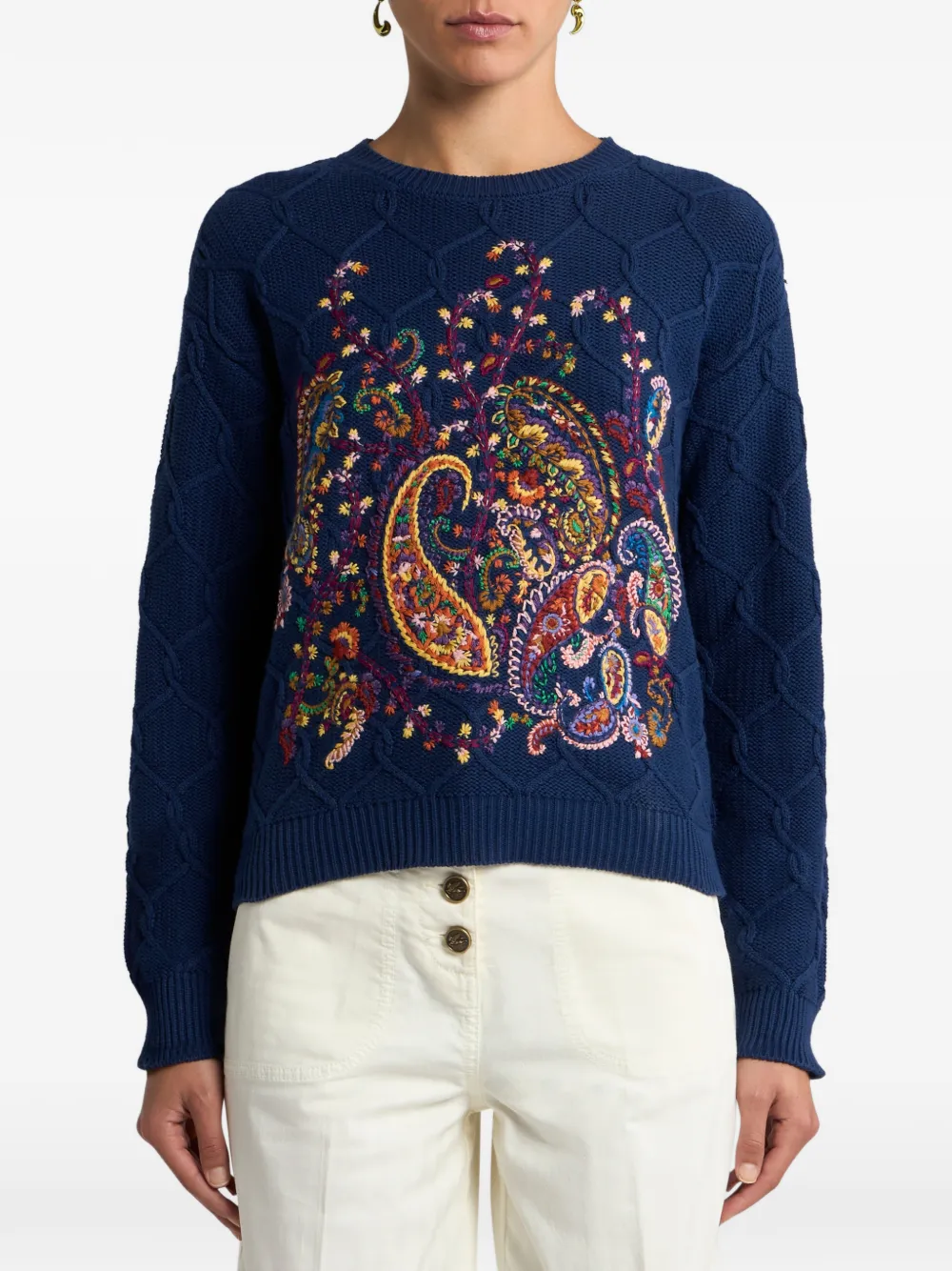 Свитер с вышитым узором пейсли Etro, синий 129 161₽
