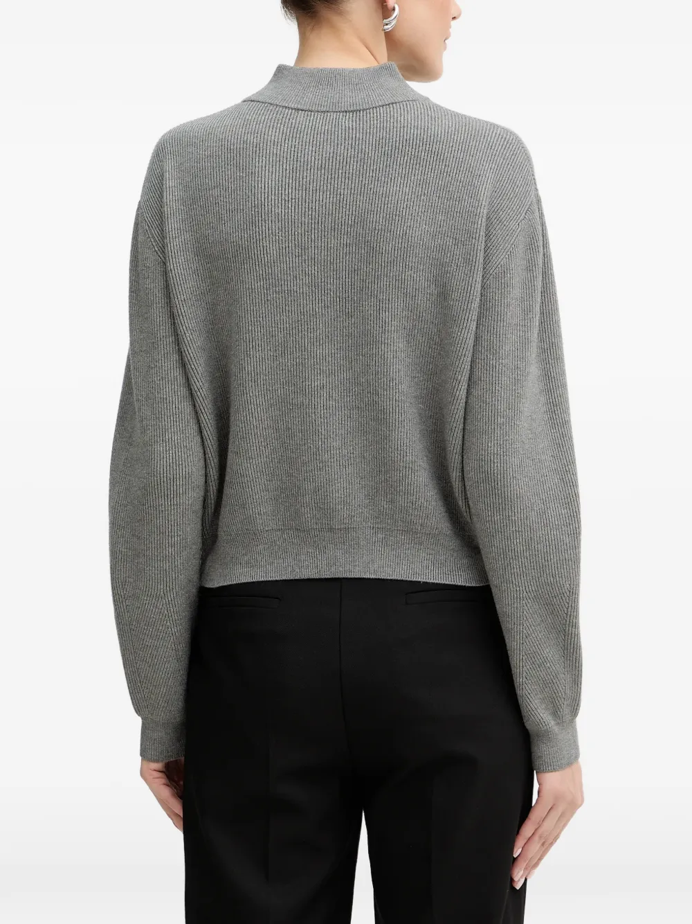 Серый вязаный кардиган в рубчик на молнии с длинными рукавами