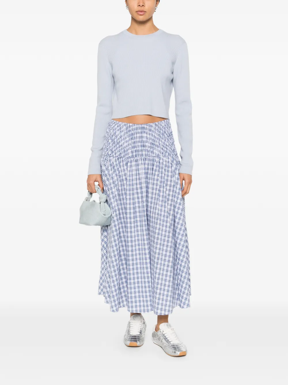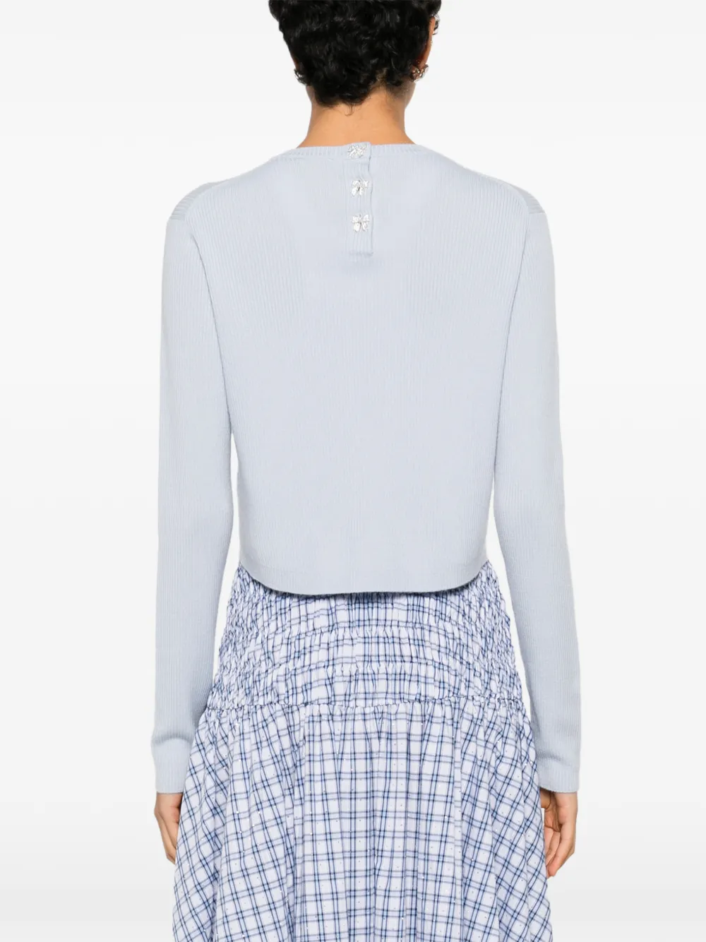 Светло-голубой укороченный джемпер в рубчик с круглым вырезом и длинными рукавами