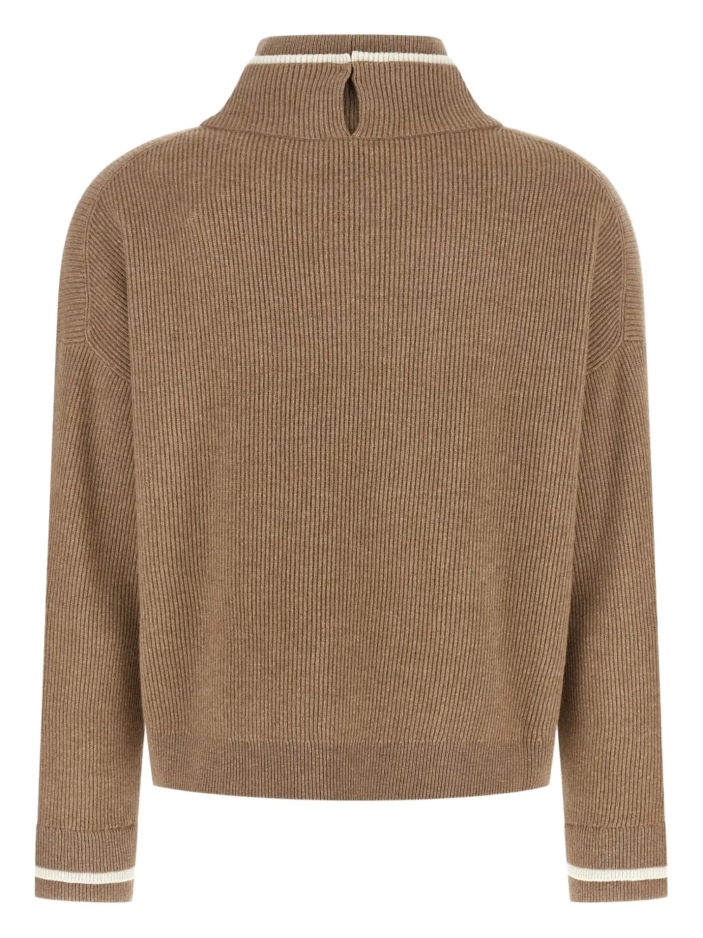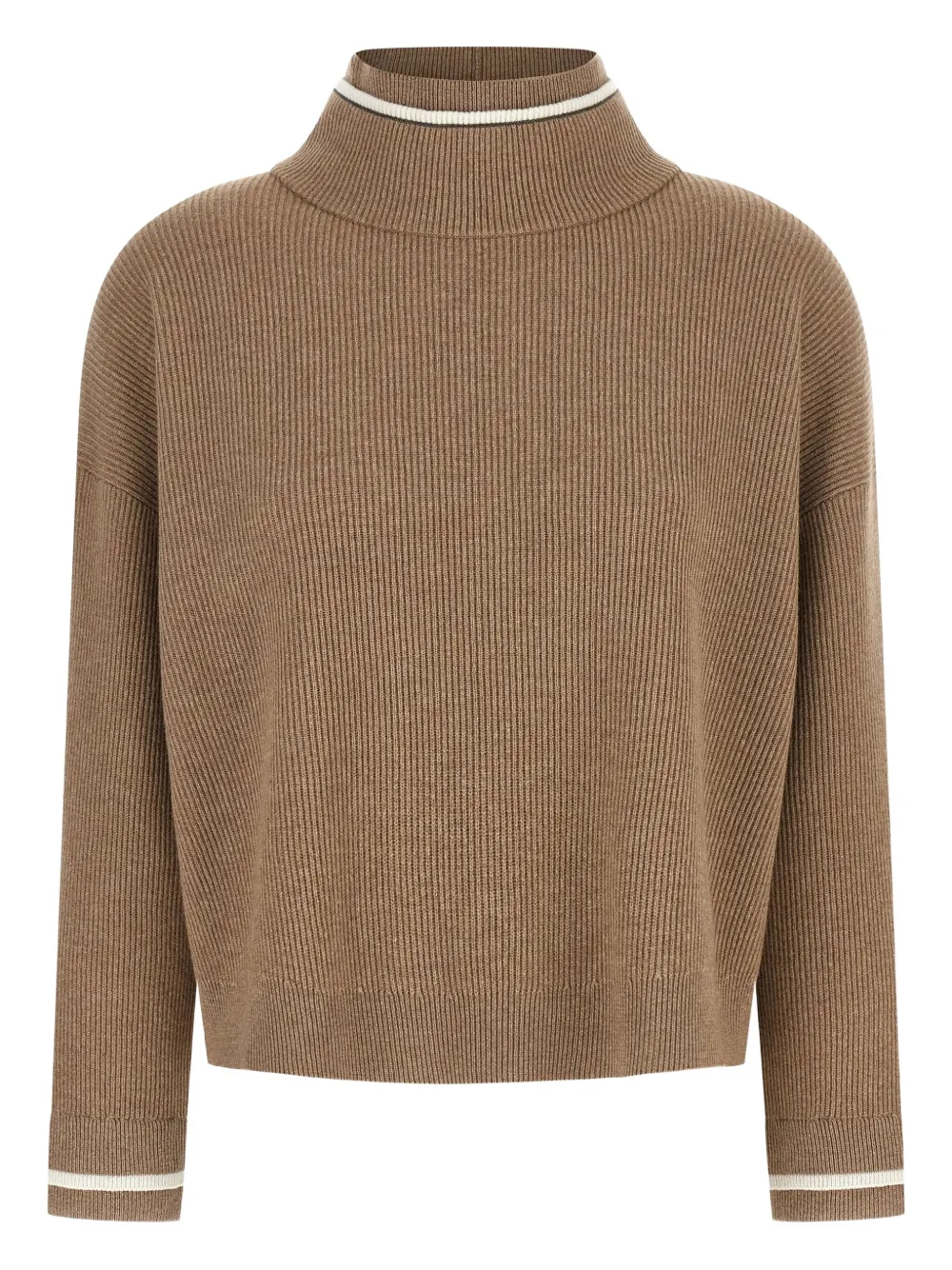 Свитер в рубчик с высоким воротником Brunello Cucinelli, коричневый